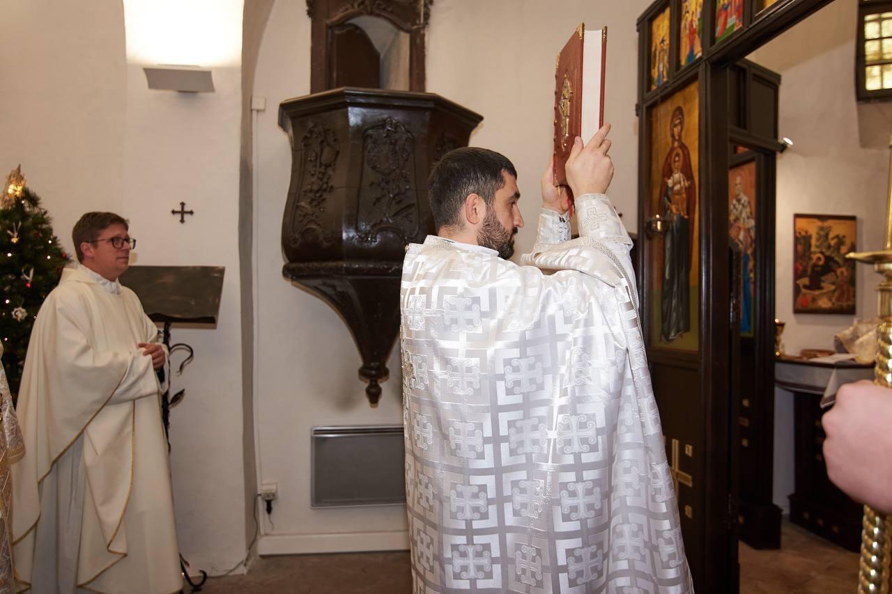 Божественну Літургію очолив кардинал Жан-Марк Авелін у співслужінні з владикою Ігорем Ранцею, настоятелем української греко-католицької громади в Марселі о. Миколою Гривником, делегованим представником Марсельської дієцезії у справах Східних Католицьких Церков о. Романом Люжем. Дияконував Жан-Філіп Ріґо, який разом зі своєю дружиною Марі-Аньєс є близькими друзями української греко-католицької спільноти.