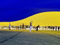 Прапор, який розгорнули учасники, має вражаючі розміри — 60 на 40 метрів, тобто площу близько 2400 квадратних метрів. Щоб утримати його, зібралися понад сотня волонтерів, адже його маса склала 184 кг. Синьо-жовте полотно вкотре стало потужним символом незламності та національної гідності.
