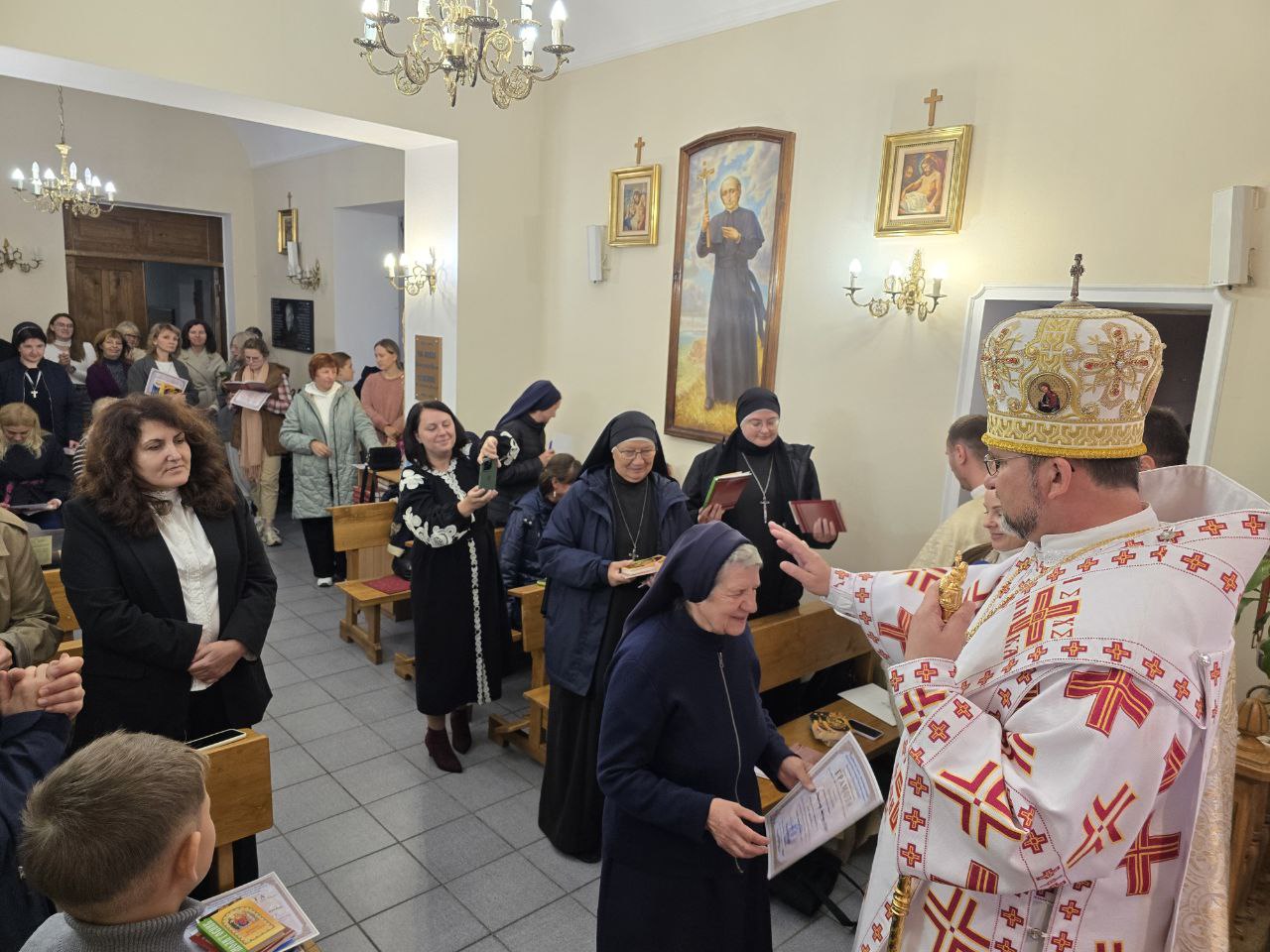 У вступному слові владика подякував катехитам за їхнє жертовне служіння та наголосив на важливості їхньої місії в сучасних умовах війни. Святкову Божественну Літургію очолив сам владика Михаїл у співслужінні з отцями, які прибули на реколекції.