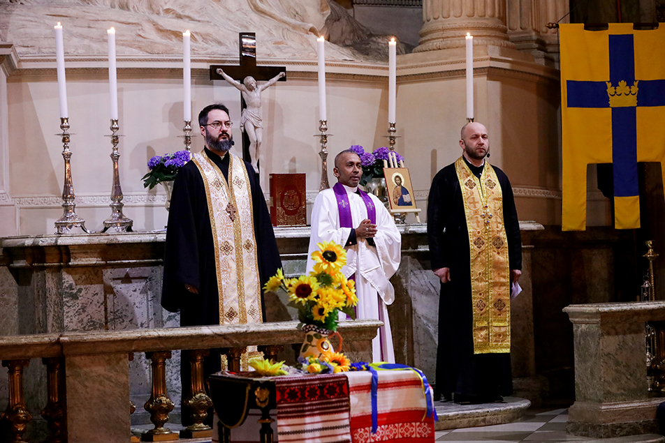 Молитовне зібрання очолили о. Андрій Мельничук — душпастир УГКЦ у Стокгольмі, придворний капелан пастор Мікаель Б’єркгаген та о. Андрій Лінкевич із капеланської місії ПЦУ.