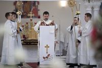 «Для того, щоб ми з вами могли досвідчити щось подібне ми передаємо кожному з вас цей пасхальний хліб. Пам’ятайте, що минулої неділі ми урочисто освятили його під час Пасхальної Літургії. Упродовж усього тижня він перебував серед нас — ми його шанували, цілували, а тепер роздаємо всім. Його можуть прийняти навіть ті, хто з різних особистих причин не мав змоги приступити до Святого Причастя. Щоб наша відповідь Христові була подібною до відповіді апостола Томи, приймаючи цей хліб, скажіть: „Господь мій і Бог мій!“ Христос воскрес!»