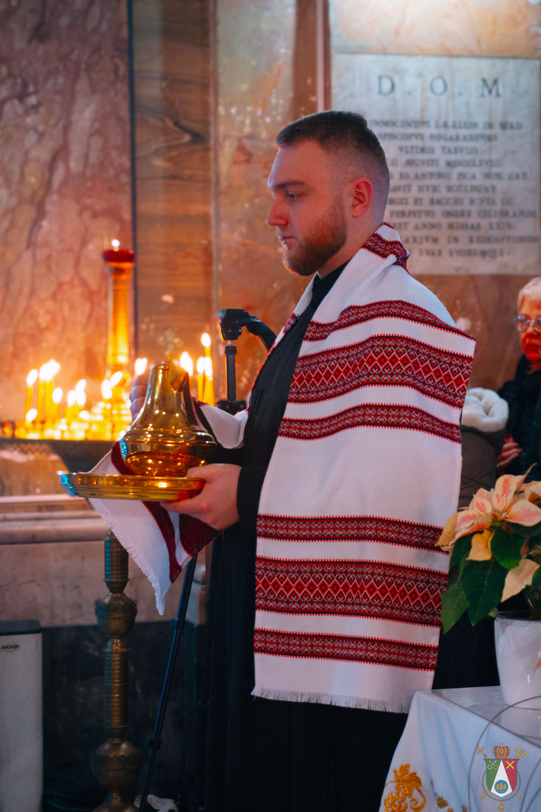Різдвяну Божественну Літургію апостольський адміністратор Апостольського екзархату в Італії очолив в катедральному храмі Жировицької Божої Матері і Святих мучеників Сергія і Вакха в Римі. Із ним співслужили: о. Любомир Костюк, парох персональної парафії Апостольського Екзархату Жировицької Божої Матері і святих мучеників Сергія і Вакха, о. Михайло Карпинець, віце-парох парафії, диякон Богдан Криницький, диякон Даниїл Ґаладза, диякон Святослав Пастущак. Про це розповідає Відділ комунікації Апостольського екзархату в Італії.