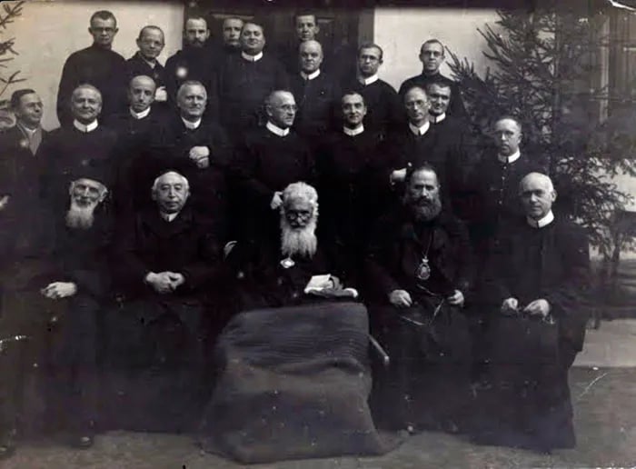 Сидять в першому ряду зліва направо: о. Климентій Шептицький, о. Йосиф Схрейверс, Митрополит Андрей, владика Миколай Чарнецький, о. Йосиф де Вохт. Фото: Фотографії старого Львова