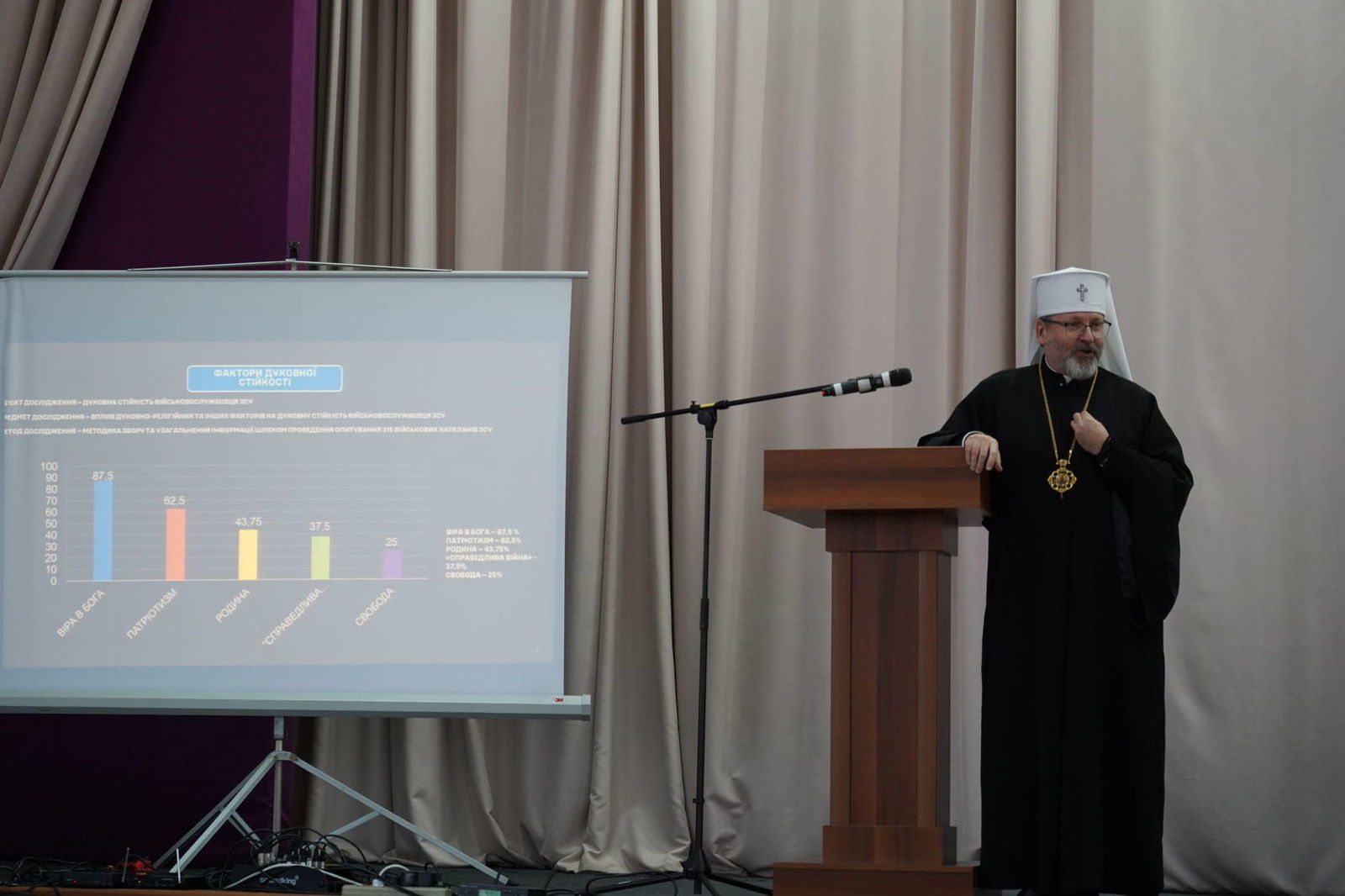Посилаючись на дослідження, Блаженніший Святослав зауважив, що головним джерелом стійкості українського воїна є віра в Бога — так відповіли 87,5 % опитаних військовослужбовців. «Йдеться не про віру як доктрину. Віра в Бога — це стосунок. Це здатність людини спілкуватися зі своїм Творцем і Спасителем. Той, хто дивиться в обличчя смерті, відчуває, що людське життя є щось більше, ніж лише земне».