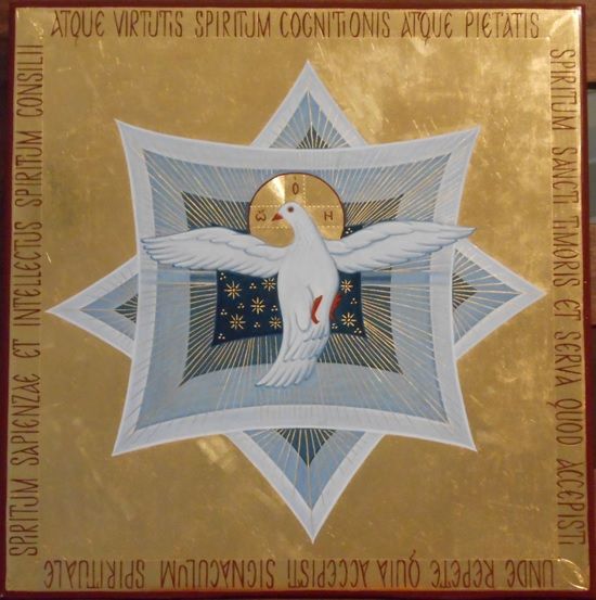 У Діяннях Святих Апостолів, яке сьогодні прозвучало в храмі, ми почули про цю подію: «і роздався зненацька з неба шум, неначе подув буйного вітру, і сповив увесь дім, де вони сиділи. І з’явились їм поділені язики, мов вогонь, і осів на кожного з них. Усі вони сповнились Святим Духом і почали говорити іншими мовами, як Дух давав їм промовляти» (Діяння Святих Апостолів 2, 2–4).