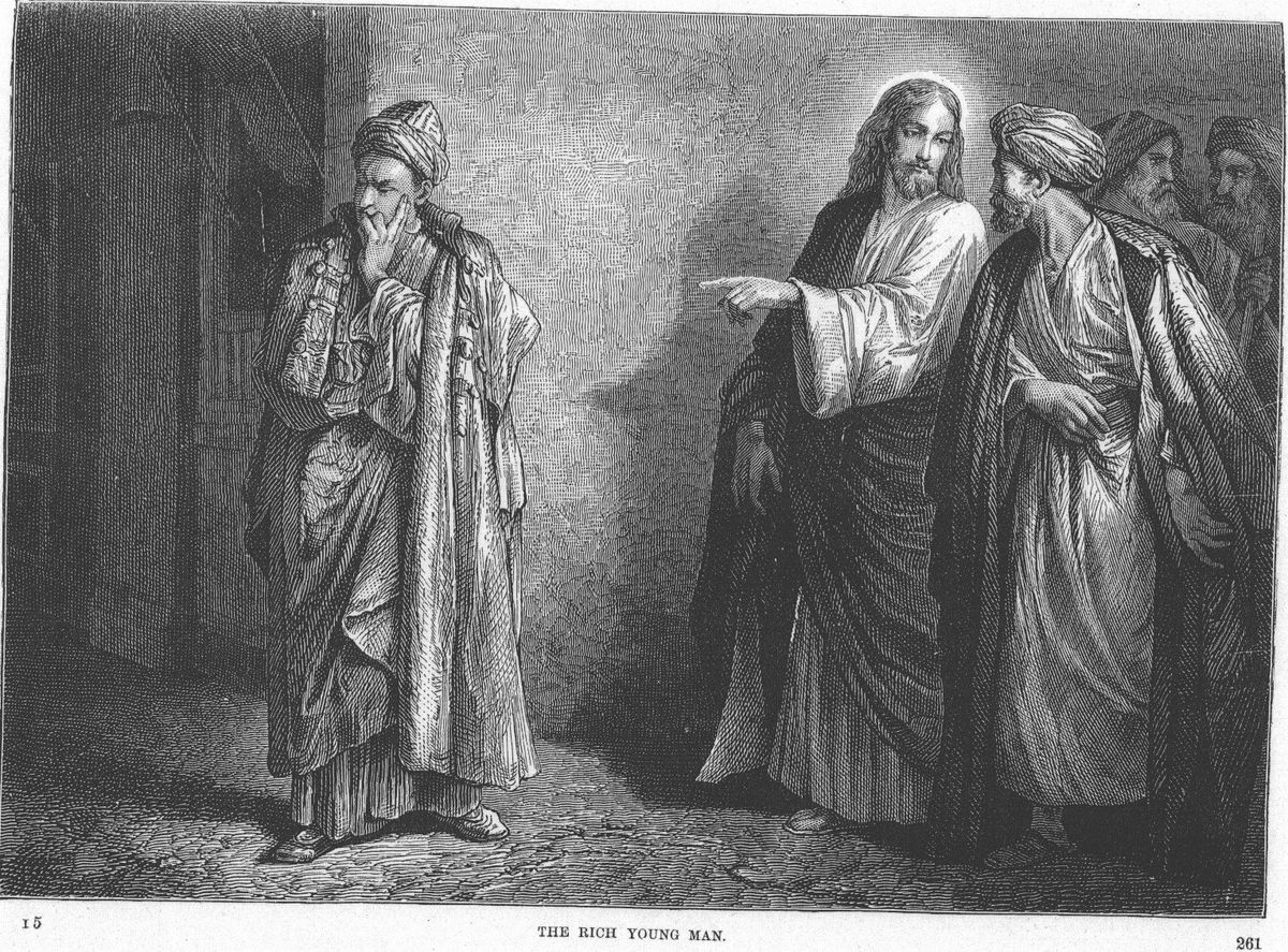Святий апостол Матвій описав одну із зустрічей Ісуса Христа з чоловіком. Цього юнака цікавила справа спасіння й він бажав почути від Учителя певні напрямні свого життя. Ісус нічого дивного не сказав йому, лиш вказав на заповіді Божі, щоб їх виконував. А юнак відразу: «Це все зберіг я [змалку]; чого ще мені бракує?» (Мт. 19, 20). Не знаємо чи юнак дійсно відчував брак у своєму житті? Чи, можливо, очікував на похвалу Ісуса за виконання закону? Господь не вступав у дебати з юнаком, не втрачав часу на пояснення його питання, бо бачив його душу наскрізь і відповів йому: «Якщо хочеш бути досконалим, піди та продай своє майно, роздай бідним, і матимеш скарб на небі; а тоді йди за Мною» (Мт. 19, 21). Хлопець спокійно віддалився від Спасителя, бо більше за Бога любив майно.