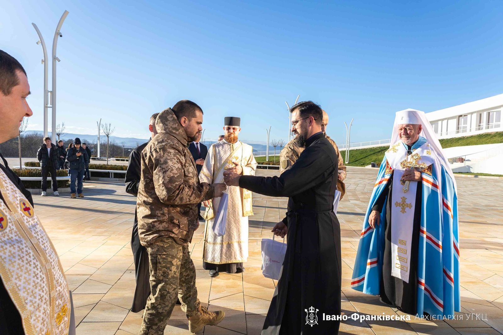 Також до присутніх звернувся захисник України, дякуючи за постійну молитву та всіляку підтримку українського війська. На завершення архиєпископ поблагословив усіх освяченою водою та передав воїнам пам’ятні подарунки від Відпустового центру блаженного Симеона Лукача.