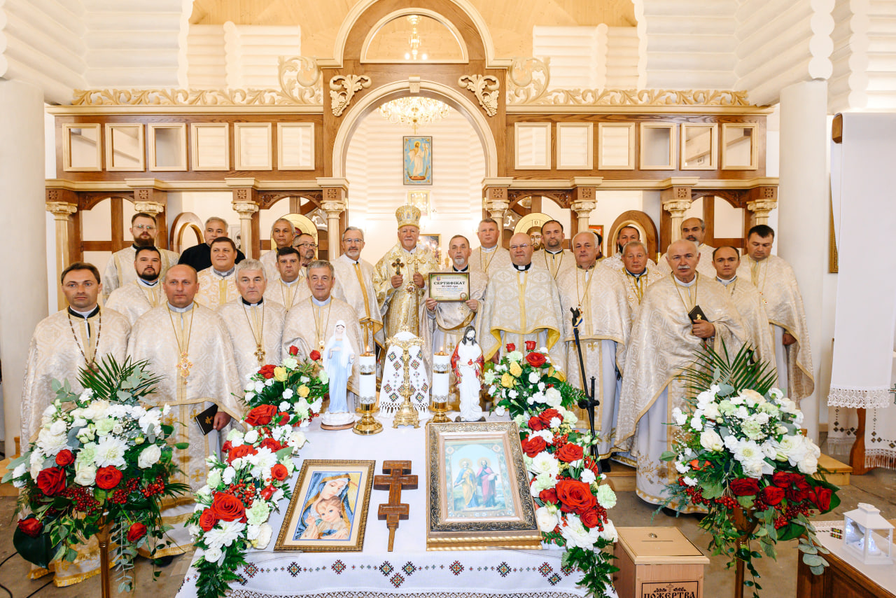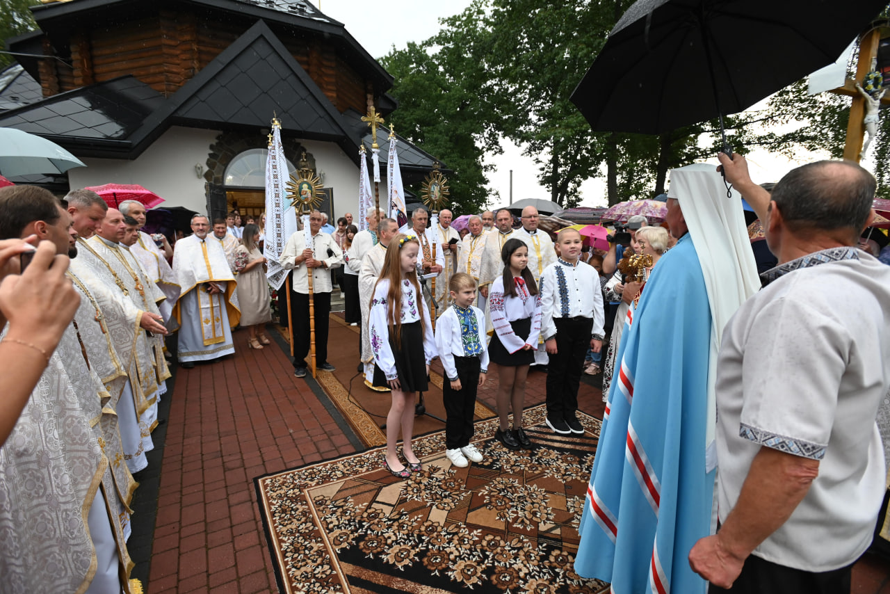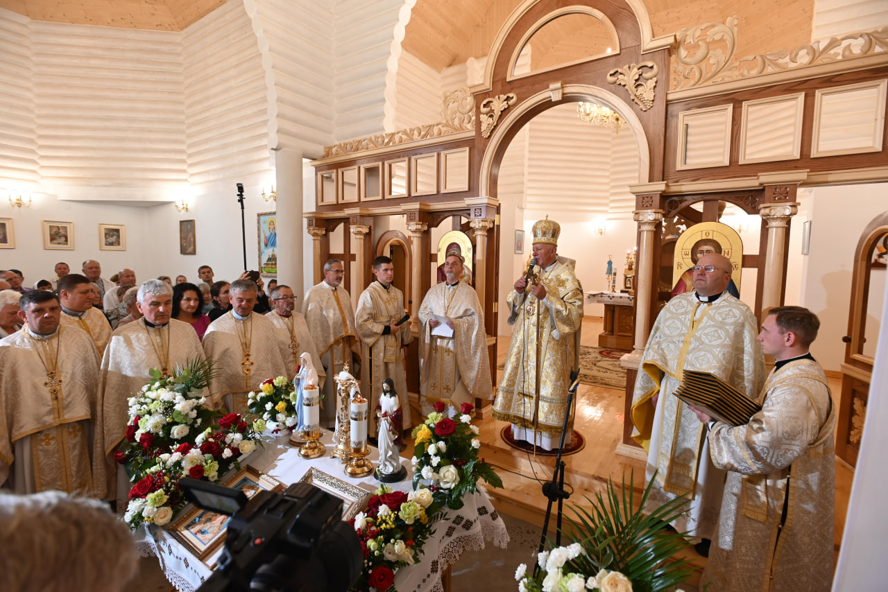 Після урочистого одягання архиєрей звершив Чин освячення храму. У цьому часі відбулося освячення престолу й церкви зсередини. Опісля всі зібрані у святині вийшли на подвір’я, щоб процесійно обійти храм із мощами святих.