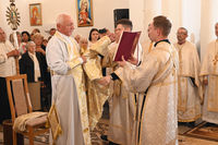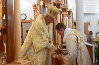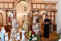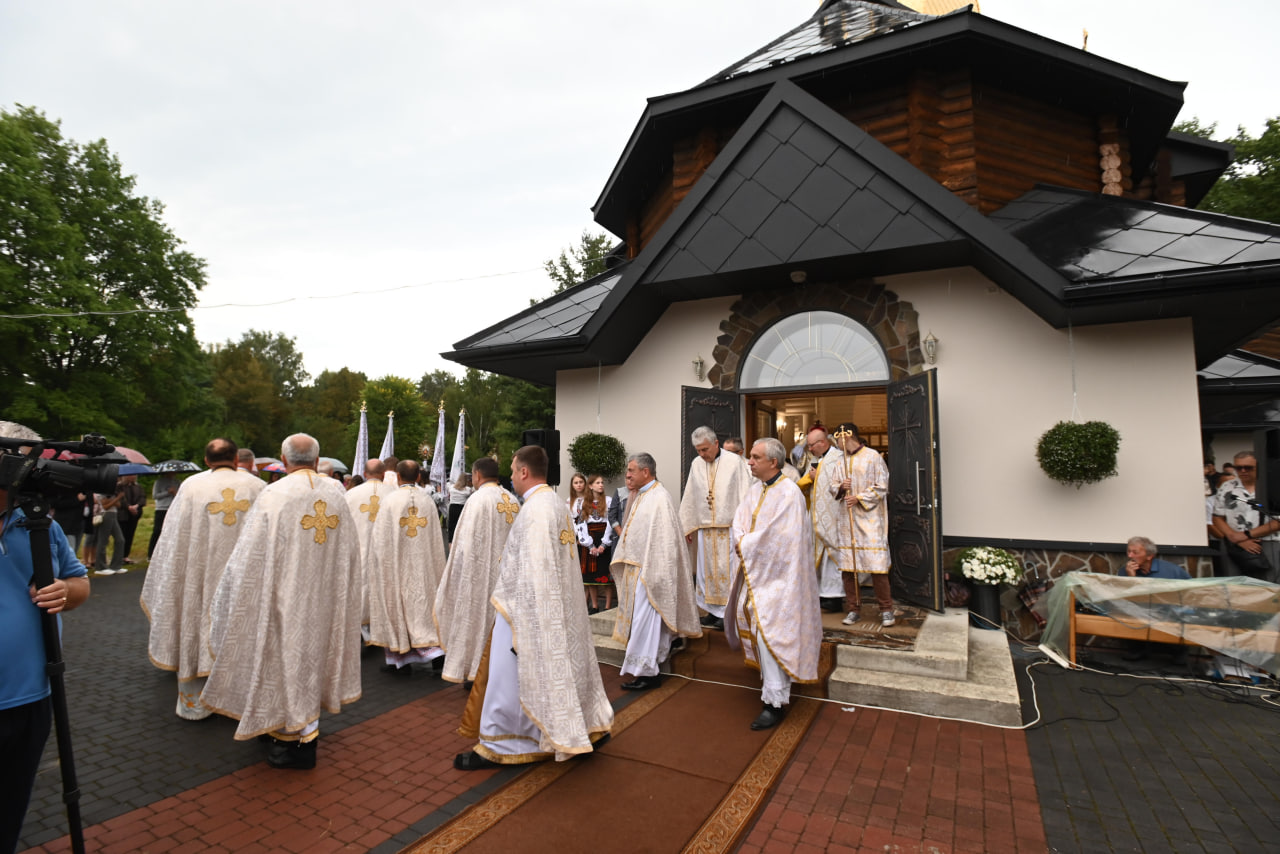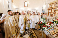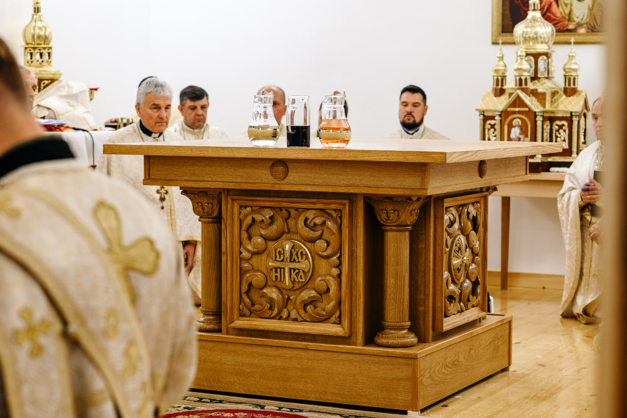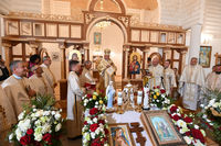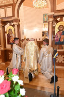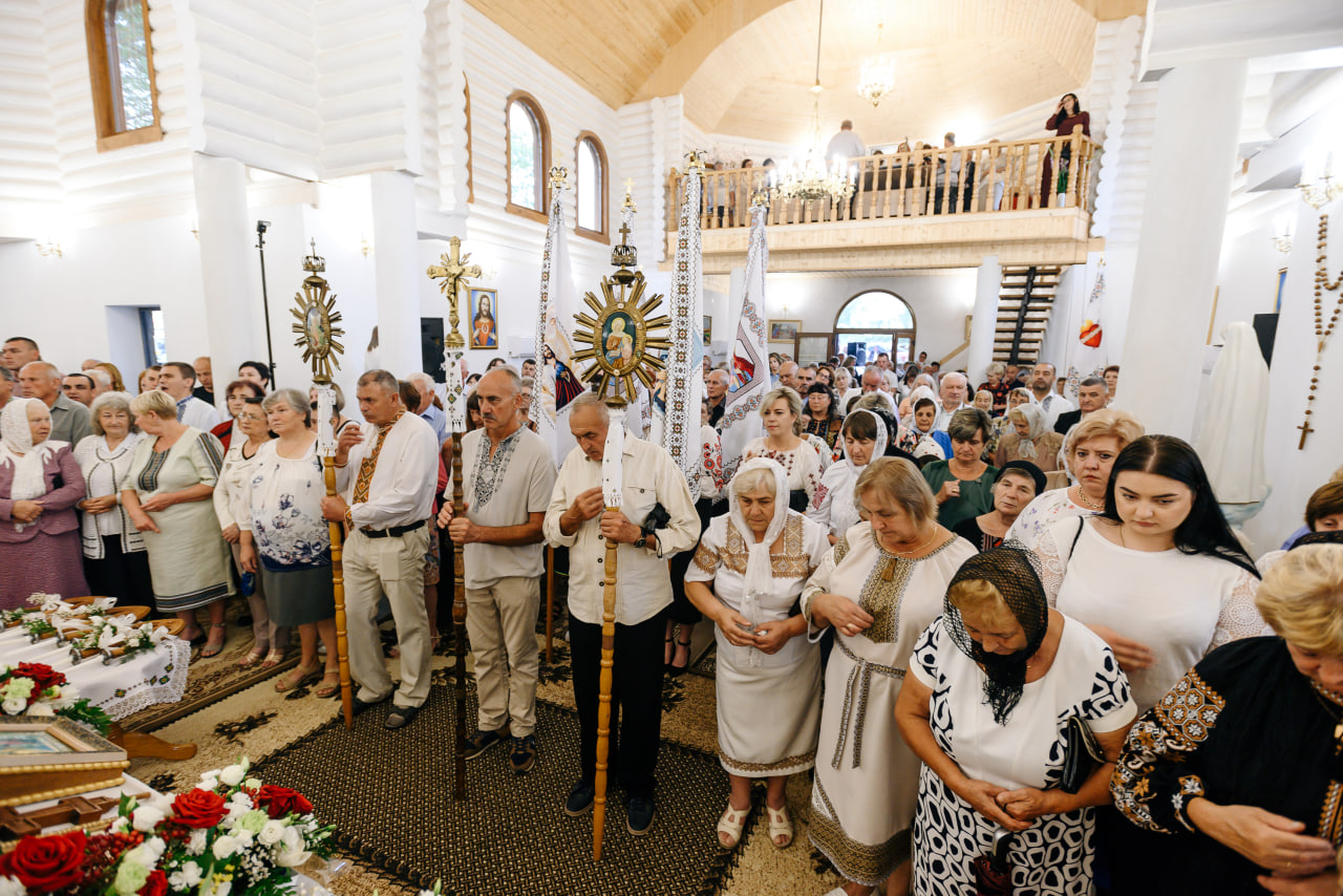 Після урочистого одягання архиєрей звершив Чин освячення храму. У цьому часі відбулося освячення престолу й церкви зсередини. Опісля всі зібрані у святині вийшли на подвір’я, щоб процесійно обійти храм із мощами святих.