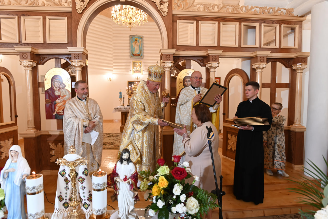 Після завершення Божественної Літургії відбулося зачитання грамот та вручення відзнак. Зокрема, отець-парох Дмитро Павлик отримав декрет про право носити набедреник. Своєю чергою грамотами були відзначені парафія, духовенство та жертводавці.