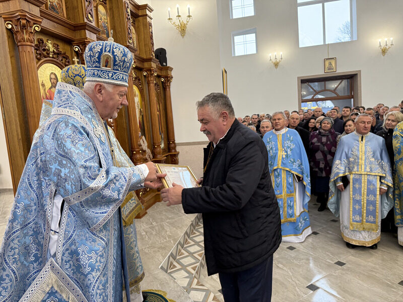 Після завершення Божественної Літургії митрополит Володимир та владика Петро висловили щиру подяку всім присутнім за спільну молитву. З нагоди освячення храму були вручені подячні грамоти тим, хто доклав зусиль до спорудження святині. Опісля о. Василь Катеринюк подякував владика за спільну молитву та духовну підтримку громади.