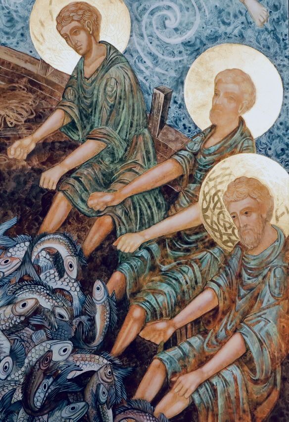 Відтак рибалки відчалили на глибину, закинули сіті і зловили стільки риби, що сіті почали рватися, а човни ледь не втопилися під вагою улову. Тільки тоді Петро пізнає Господа. Він розуміє, що до нього прийшов не простий мандрівний учитель, а сам Бог. Тепер він готовий піти і покинути все та стати Його учнем.