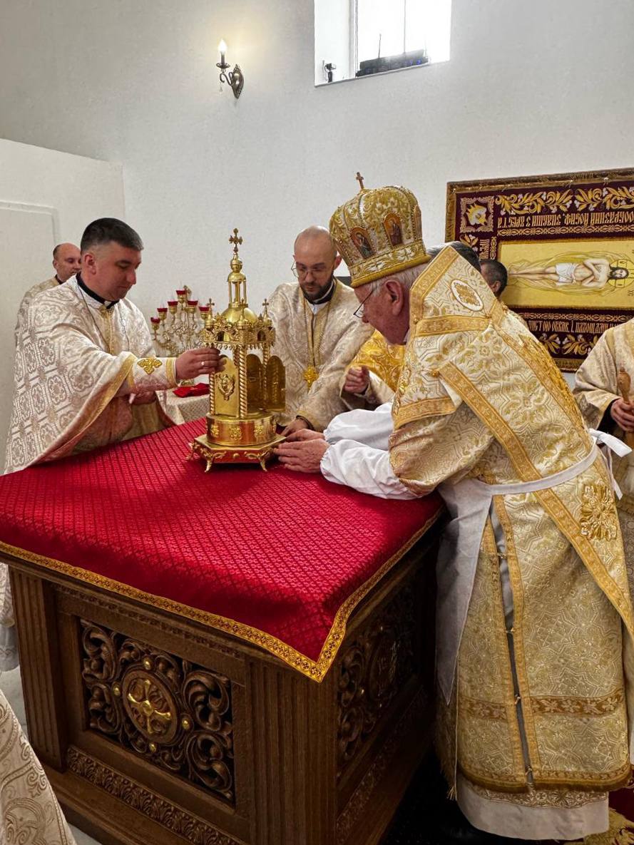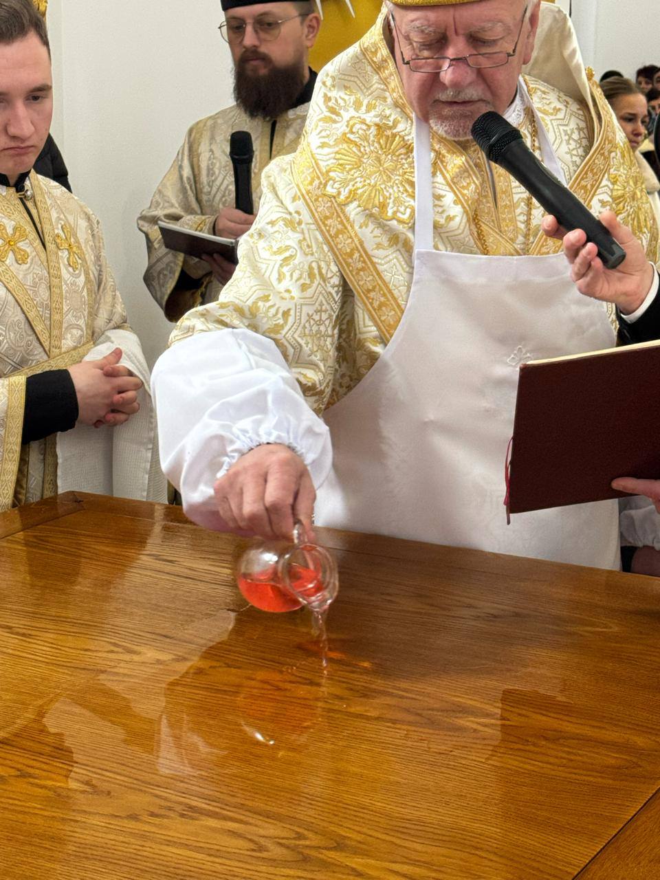 На подвір’ї святині владику теплими словами вітали діти, представники влади та духовенство на чолі з парохом парафії о. Олегом Каськівим. Опісля відбувся Чин освячення оновленого храму та нового престолу. Відтак митрополит Івано-Франківський освятив хрест, а також памʼятник о. Івану Дрощуку.