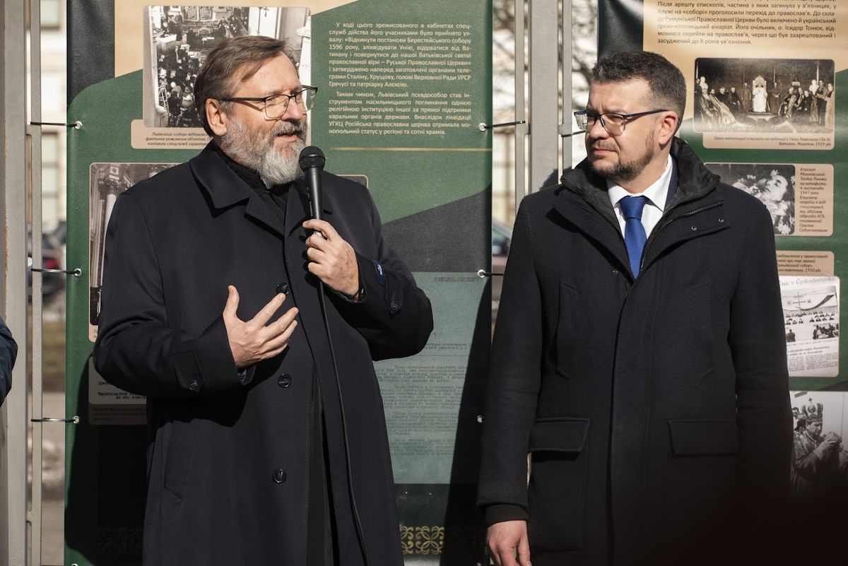 Відкриваючи експозицію, Отець і Глава УГКЦ Блаженніший Святослав нагадав, що цими днями виповнюється 80 років від спроби сталінського режиму ліквідувати Церкву через псевдособор у Львові.