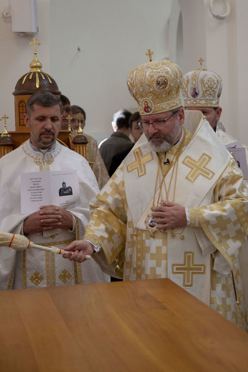 Перед освяченням було проголошено фундаційну грамоту про найменування храму та закладено капсулу в бічну стіну. Відтак Блаженніший Святослав звершив Чин освячення престолу.