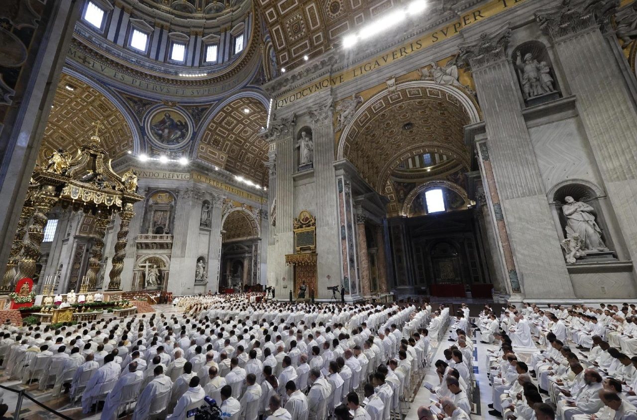 «У перший рік, коли я очолюю Святу Месу мира як Єпископ Риму, прагну разом з вами замислитися над місією, до якої Бог посвячує нас як свій народ», — сказав Папа Лев XIV на початку проповіді, яку він виголосив під час Святої Меси з освяченням мира, яку він очолив у базиліці Святого Петра у Ватикані у Великий четвер, 2 квітня 2026 року, і на яке зібралося духовенство Римської дієцезії. Молитовна зустріч розпочалася Літургією Годин, а після проповіді священники відновили свої обітниці. Далі відбулося освячення священних єлеїв, призначених для уділення Святих Таїнств. Про це розповідає українська редакція «Vatican News».