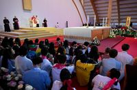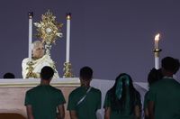 Після того, як завершився діалогу Святішого Отця з представниками молоді, прозвучав спів «Алилуя», після чого зачитано уривок з Євангелії від Луки про діалог воскреслого Ісуса з учнями в дорозі до Емауса. Далі розпочалася Євхаристійна адорація. Мільйонний збір юнаків і дівчат занурився у молитовну тишу, в той час місце проведення зустрічі огорнула нічна темрява. Молитовна тиша чергувалася зі співом 39 псалма різними мовами, а також зачитуванням біблійних текстів про Євхаристію. Адорація завершилася благословенням Пресвятими Дарами, яке уділив Папа, після чого піднеслася молитва до Пресвятої Богородиці.