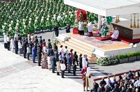 «Слова Ісуса передають нам те, як Бог дивиться на світ, у кожному часі та на кожному місці», — цими словами Папа Лев XIV розпочав свою проповідь, виголошену під час Святої Меси, яку він у неділю, 28 вересня 2025 року, очолив на площі Святого Петра у Ватикані з нагоди Ювілею катехитів. Поряд з десятками тисяч катехитів з усіх кінців світу, серед учасників богослужіння були також кілька сотень українських катехитів, які прибули з України та з діаспори. Про це розповідає українська редакція «Vatican News».