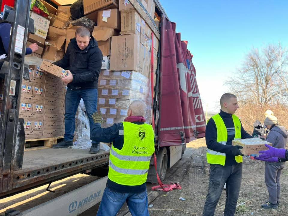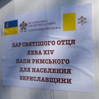 Цими днями вірні парафії Мучеників Макавейських міста Берислав Херсонської області отримали вантажівку з гуманітарною допомогою вагою близько 20 тонн. Допомогу передав Папа Лев XIV спільно з Товариством «Свята Софія» в межах постійної гуманітарної підтримки постраждалих від війни в Україні.