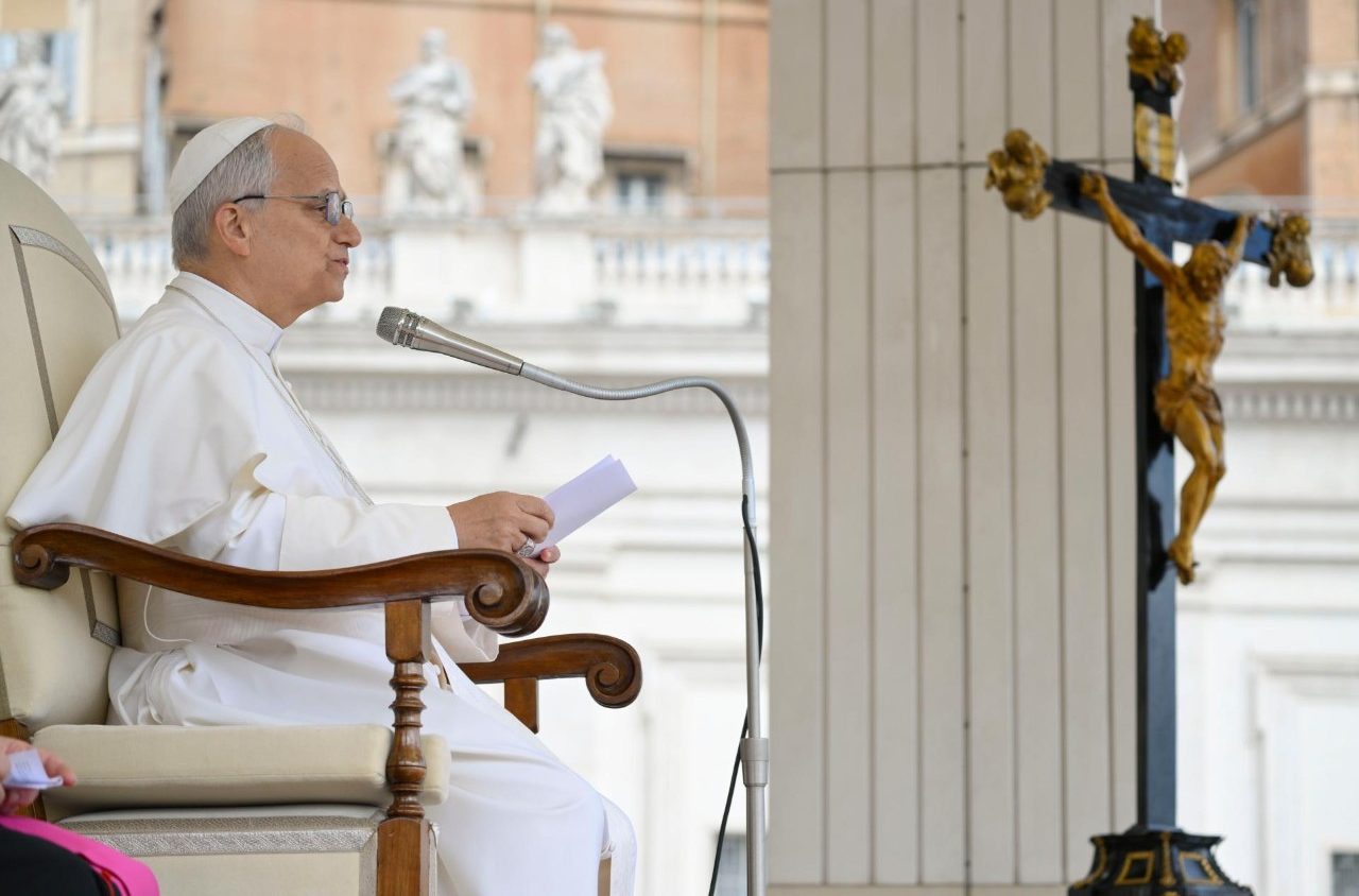 Роздумуючи разом з паломниками про таємницю Христового воскресіння, Папа Лев XIV вказав на те, як явившись своїм учням, Ісус показує їм свої рани не як докір, а як доказ любові, яка є сильнішою від будь-якої зради. Так він доручає Церкві свідчити милосердне обличчя небесного Отця.