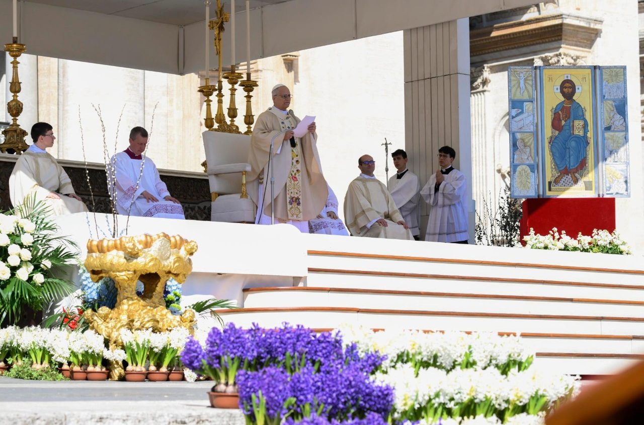 Як зауважив Лев XIV, Господня Пасха дарує нам надію, нагадуючи, що «у Воскреслому Христі нове створіння можливе кожного дня». День Христового воскресіння відсилає нас до створення, до першого дня, коли Бог створив світ, звіщаючи, що «нове життя, сильніше від смерті, проростає для людства». «Пасха — це нове створення, яке здійснив Воскреслий Господь, це новий початок, це життя, яке нарешті стало вічним завдяки перемозі Бога над древнім Супротивником. Саме цієї пісні надії ми сьогодні потребуємо. І саме ми, воскреслі з Христом, повинні нести його на вулиці світу. Тож біжімо, як Марія Магдалина, сповіщаймо про це всім, несімо своїм життям радість воскресіння, щоб скрізь, де ще витає привид смерті, засяяло світло життя», — закликав Папа, побажавши: «Нехай же Христос, наша Пасха, благословить нас і дарує свій мир усьому світу!».