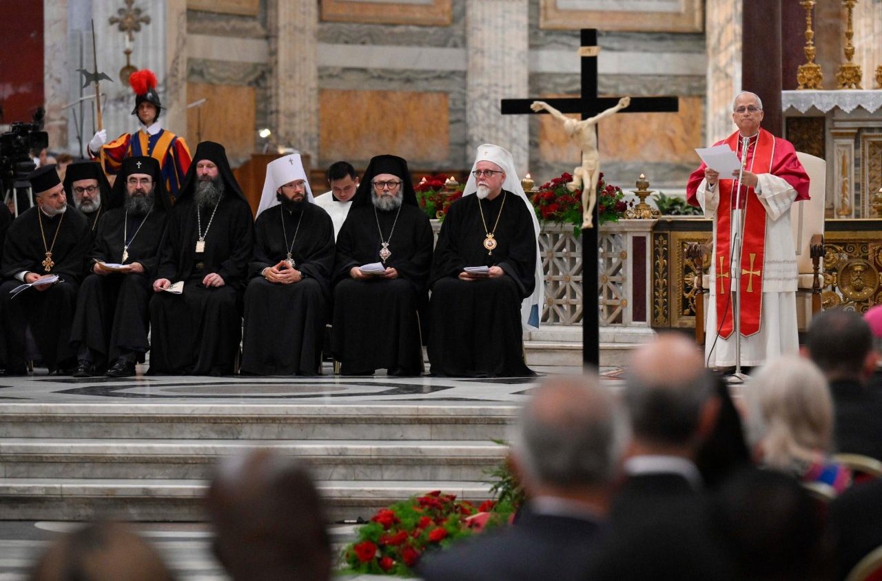 Цитуючи слова з вечірні у візантійському обряді з нагоди празника Воздвиження, що описує Христовий хрест, наше спасіння, як «надію християн» і «славу мучеників», Папа на початку богослужіння привітав представників православних і давньосхідних православних Церков, церковних християнських спільнот та екуменічних організацій, подякувавши за те, що прийняли запрошення взяти участь у цій молитві. «Ми переконані, що martyria (свідчення-мучеництво) аж до смерті є „найсправжнішим сопричастям, яке може бути з Христом, Який проливаю свою кров, й у цьому жертвоприношенні робить близькими тих, що раніше були віддаленими“», — сказав він, цитуючи енцикліку святого Івана Павла ІІ „Ut unum sint“, додаючи, що разом з цим святим Папою ми сьогодні також можемо ствердити, що «там, де ненависть, здавалося, пронизувала кожен аспект життя, ці відважні слуги Євангелія та мученики за віру наочно продемонстрували, що „любов сильніша від смерті“».