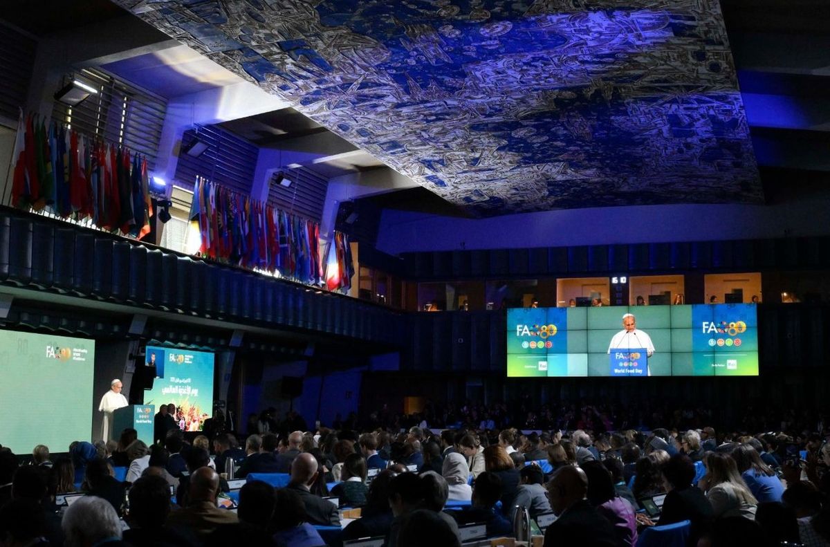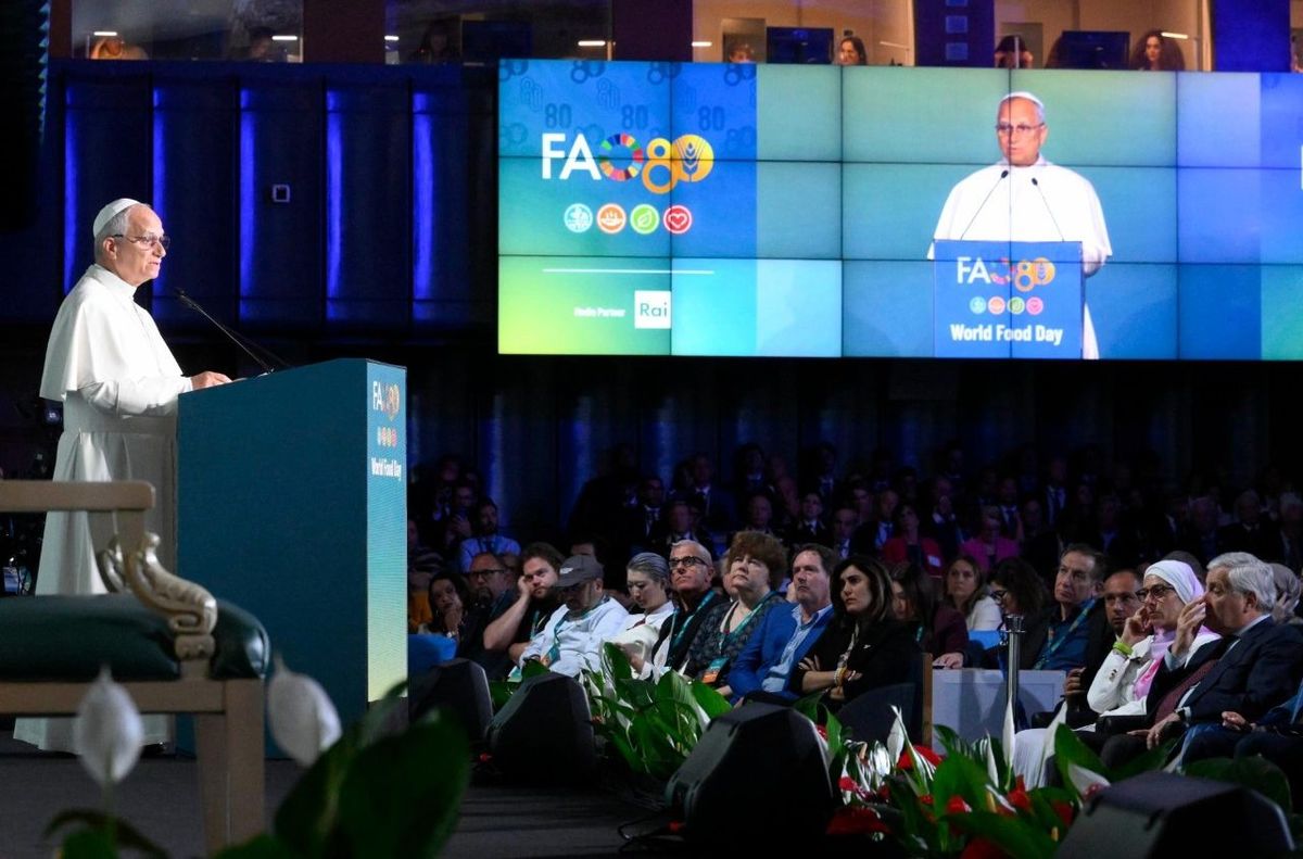 Святіший Отець висловив занепокоєння тим, що дедалі частіше бачимо використання продовольства як зброї під час війни, віддаляючи той консенсус, підтримуваний протягом цих восьми десятиліть, що «штучно створений голод є воєнним злочином». Він нагадав, що «міжнародне гуманітарне право забороняє без винятків атакувати цивільне населення та блага, необхідні для виживання населення». «Все це, здається, забулося, оскільки ми з болем спостерігаємо за постійним використанням цієї жорстокої стратегії, яка прирікає чоловіків, жінок і дітей на голод, відмовляючи їм у найелементарнішому праві: праві на життя», — мовив Папа, наголошуючи, що так далі не може тривати, бо «голод не є призначенням людини». За його словами, голод «не є лише проблемою, яку треба вирішити», йдеться про «голос, який підноситься до неба та вимагає швидкої відповіді». Би спільна боротьба, в якій «ніхто не може залишатися осторонь».
