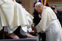 Після проповіді Папа Лев омив ноги дванадцятьом священникам. Одинадцять із них він особисто висвятив минулого року, а дванадцятим був духовний отець Папської Вищої духовної семінарії Римської дієцезії.