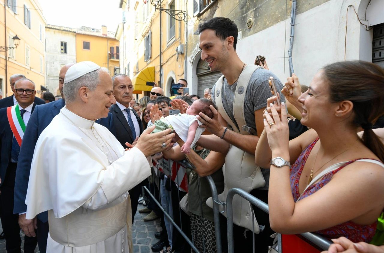 Святіший Отець зауважив, що цей давній санктуарій-ротонда має круглу форму, його стіни немов обіймають, подібно до площі Святого Петра. Якщо дивитися ззовні, то церква, як і кожна людська дійсність, може виглядати «кутастою». І її «божественна дійсність» проявляється, «коли переступаємо поріг і знаходимо прийняття». «Тоді наша вбогість, наша беззахисність, а особливо невдачі, за які нас можуть зневажати і засуджувати, — а іноді ми самі себе зневажаємо і засуджуємо, — нарешті обіймає солодка Божа сила, безумовна і позбавлена кутів любов. Марія, Ісусова мати, є для нас знаком і передвістям Божого материнства», — сказав Лев XIV, додаючи, що саме в Ній ми «стаємо Церквою-матір’ю, яка народжує та відроджує не силою світської могутності, а силою любові».