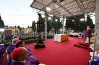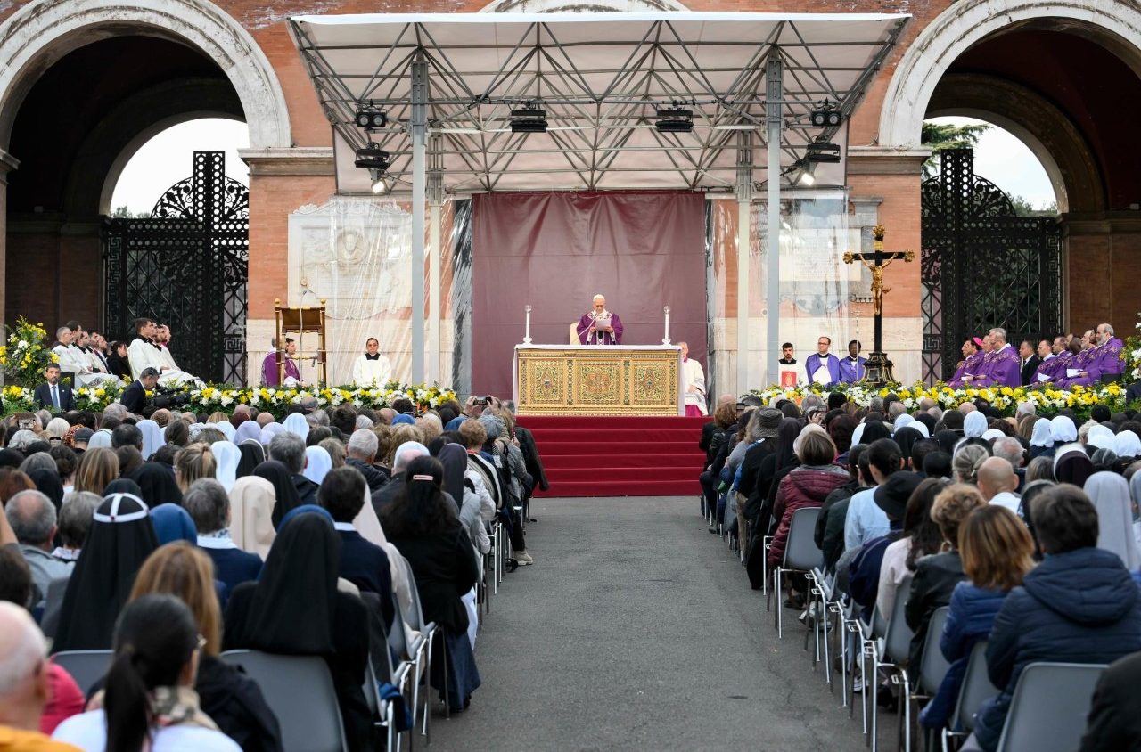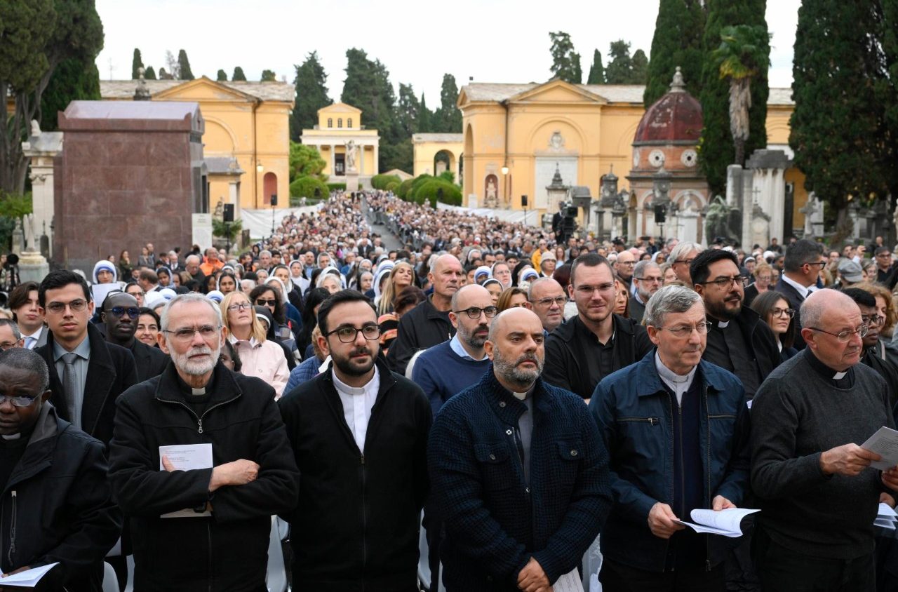 Йдучи слідами своїх попередників, Святіший Отець у день, призначений особливій молитві за померлих, відвідав кладовище, де очолив Євхаристійне богослужіння. На початку проповіді він зазначив, що пам’ять про наших близьких нас супроводжує кожного дня, про них часто нагадують якісь речі чи місця. «Сьогодні, однак, ми зібралися тут не тільки для того, щоб вшанувати пам’ять тих, хто пішов з цього світу. Християнська віра, заснована на Христовій Пасці, допомагає нам жити пам’яттю не тільки як спогадом про минуле, але й, перш за все, як надією на майбутнє. Це не стільки погляд у минуле, скільки погляд уперед, до мети нашого шляху, до безпечної гавані, яку нам обіцяв Бог, до безкінечного свята, яке нас чекає», — мовив проповідник.