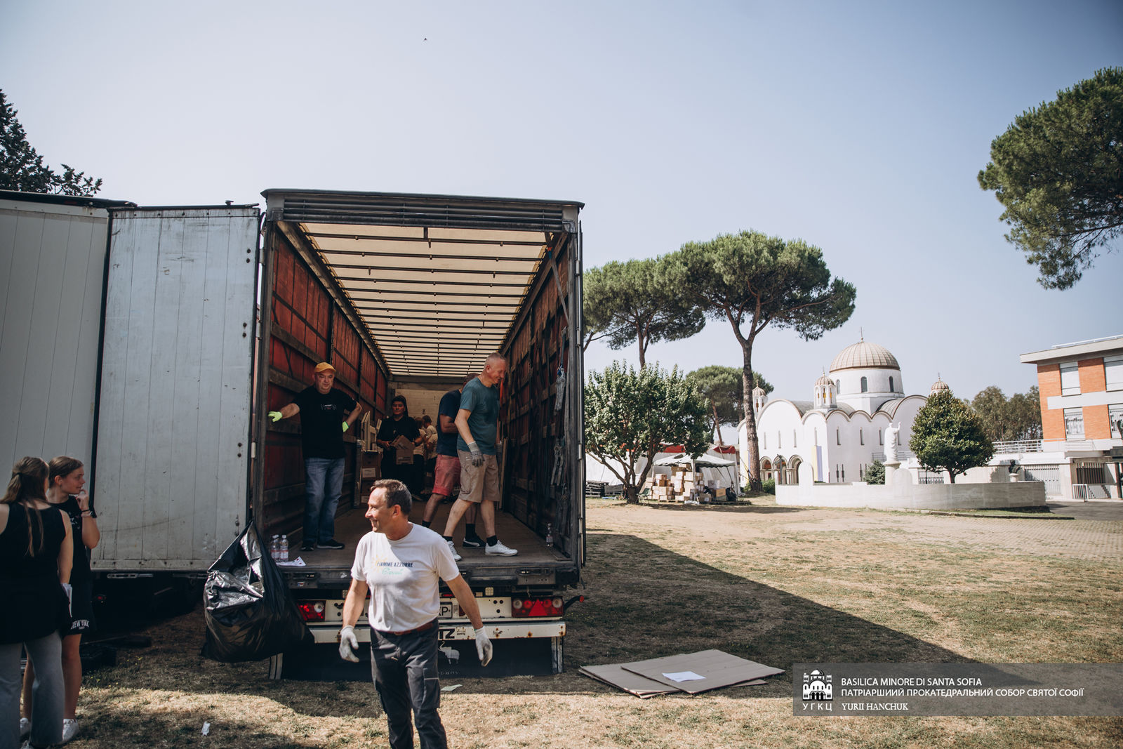 У суботу, 14 червня, на території Патріаршого Прокатедрального Собору Святої Софії в Римі відбулося чергове завантаження та відправка 30-ти тон гуманітарної допомоги для України в рамках гуманітарної Місії Релігійного Товариства «Свята Софія».