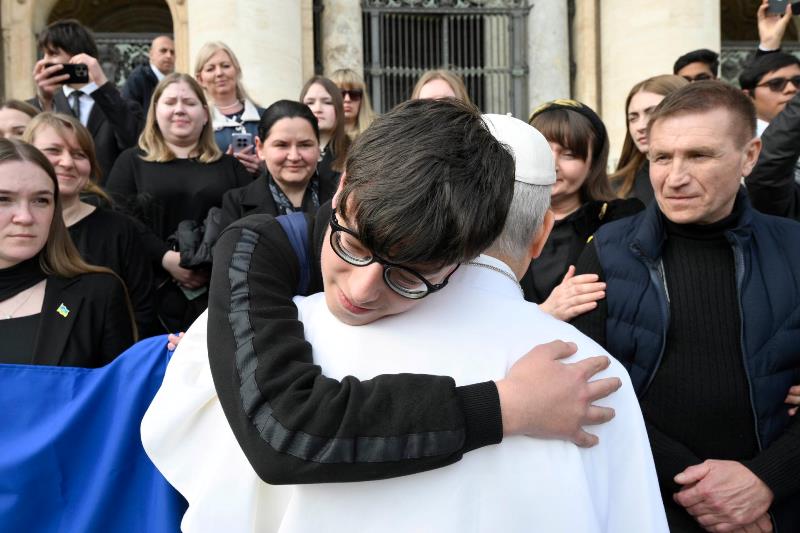 «Серед присутніх — матері, дружини, сестри, які живуть між надією і тривогою, між вірою та щоденним болем невідомості. Для багатьох із них кожен день починається і завершується молитвою — за життя, за звістку, за повернення. Вони несуть у собі силу любові, яка не зникає навіть тоді, коли немає новин і відповідей», — повідомили у Посольстві України при Святому Престолі.
