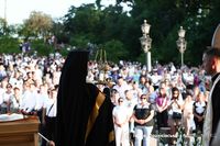 Під час моління духовенство та миряни звершили урочистий обхід з Галицькою чудотворною іконою Матері Божої й свічками довкола Патріаршого прокатедрального собору Успіння Пресвятої Богородиці.