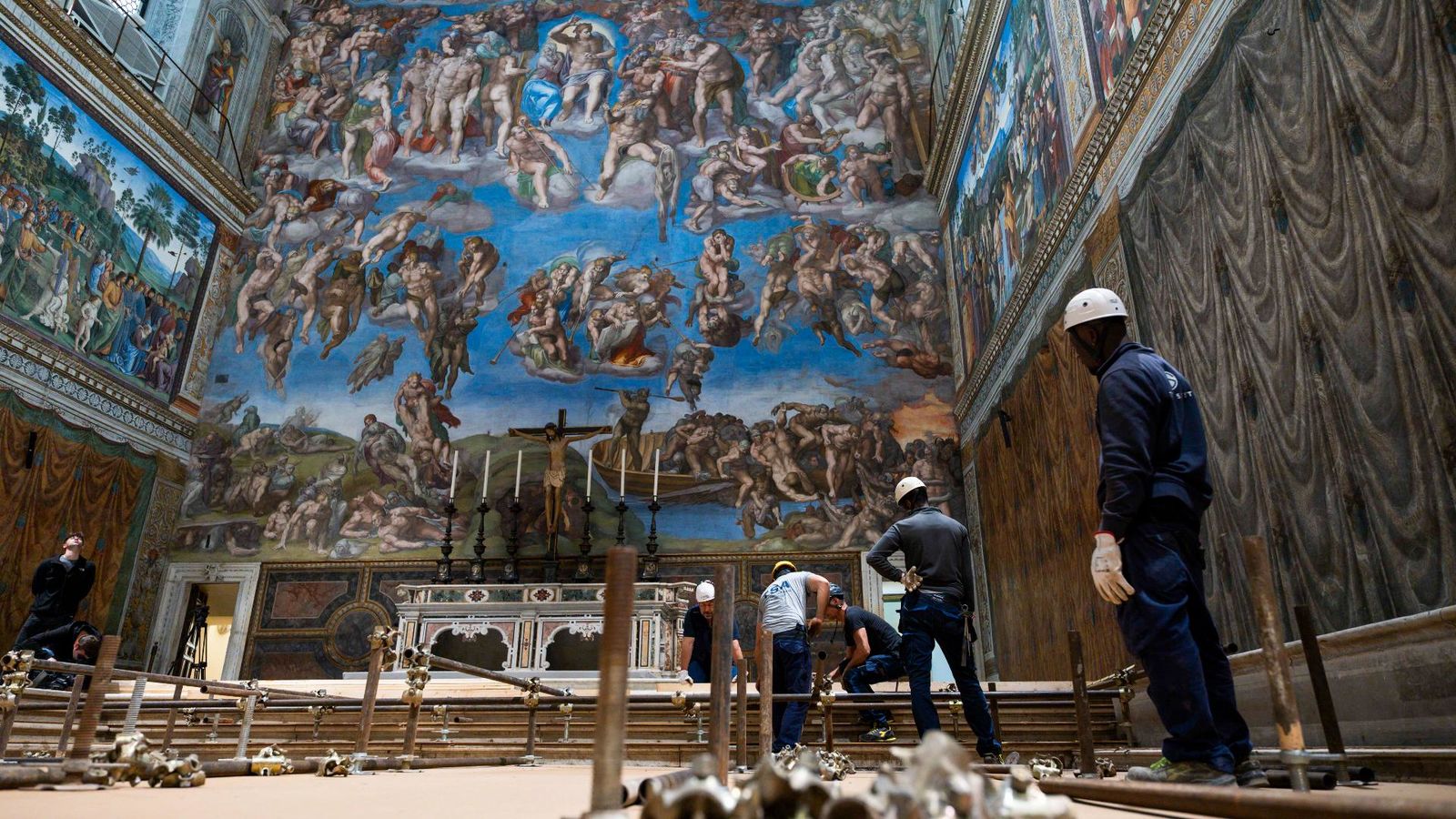 Сотворення, Страшний суд, печі: Робітники готують Сикстинську капелу до конклаву