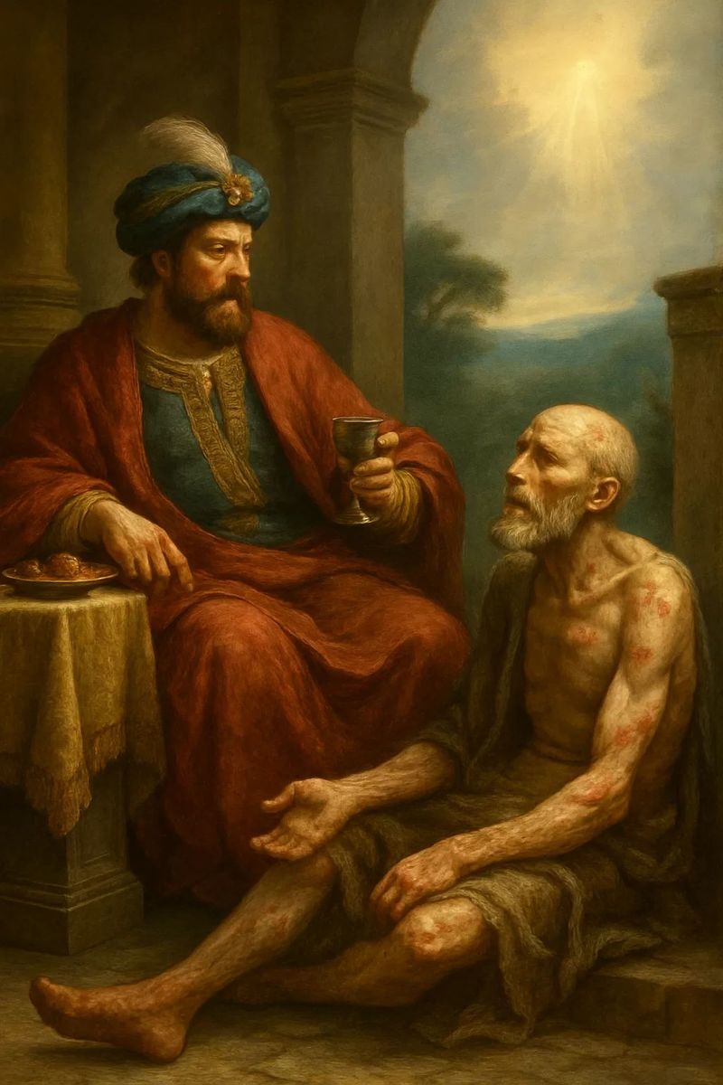 У чому була трагедія багача за життя на землі? Він не противився Богові, жодним чином не утискав убогого Лазаря. Можна сказати, навіть був гуманний. Але він його не бачив, не зауважував. Багач, мабуть, думав, що буде вічно бенкетувати, а Лазар буде вічно бідувати.