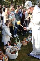 Радісне привітання «Христос воскрес!» урочисто пролунало в стінах катедри. Після богослужінь відбулося освячення великодніх кошиків, яке також здійснювали після кожної Літургії протягом дня.