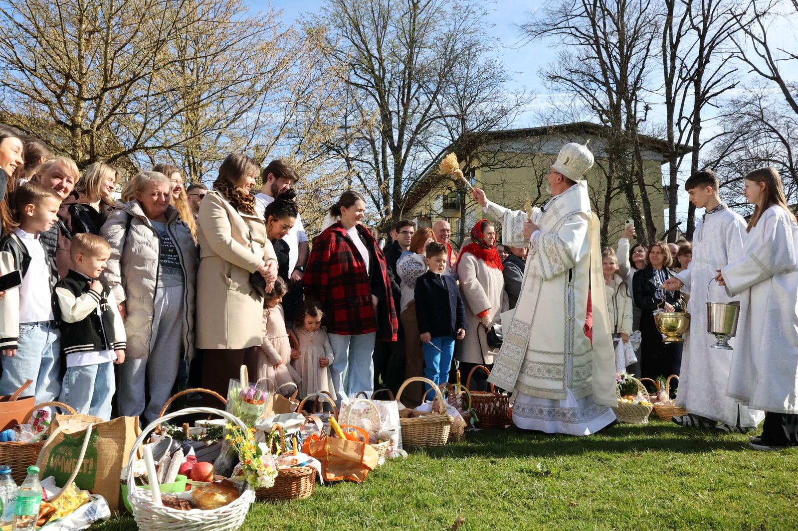Радісне привітання «Христос воскрес!» урочисто пролунало в стінах катедри. Після богослужінь відбулося освячення великодніх кошиків, яке також здійснювали після кожної Літургії протягом дня.