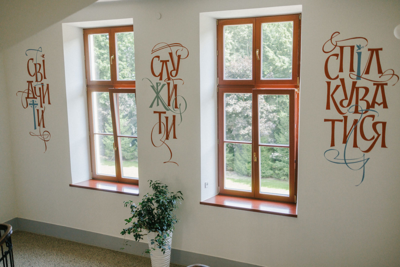 Аудиторії, коридори та офіси оздобленні творами сучасних українських митців, які створюють особливу атмосферу та надихають на творення прекрасного.