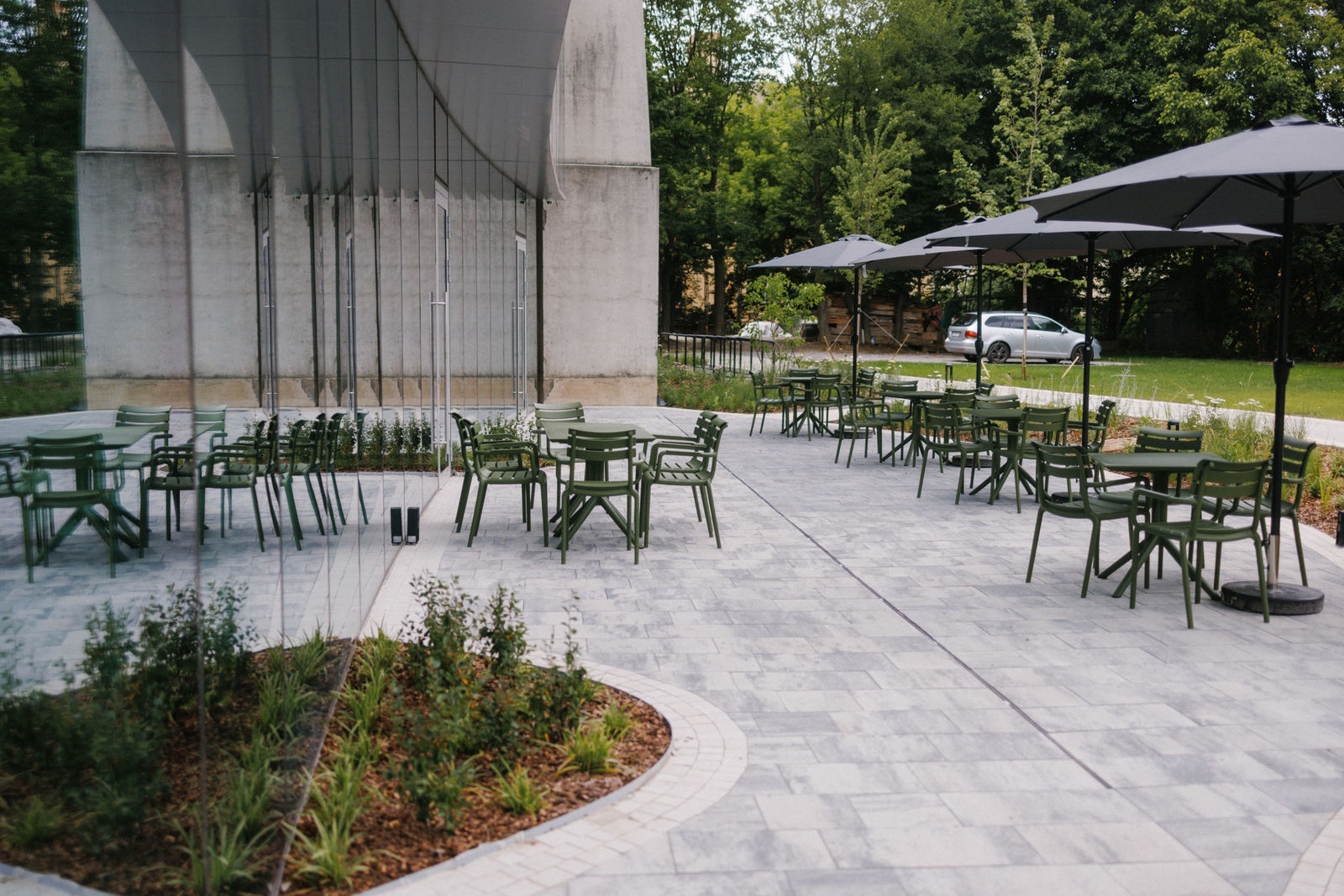 В корпусі облаштували затишні тераси та внутрішній дворик, у який можна вийти з Трапезної, що розташована на першому поверсі.
