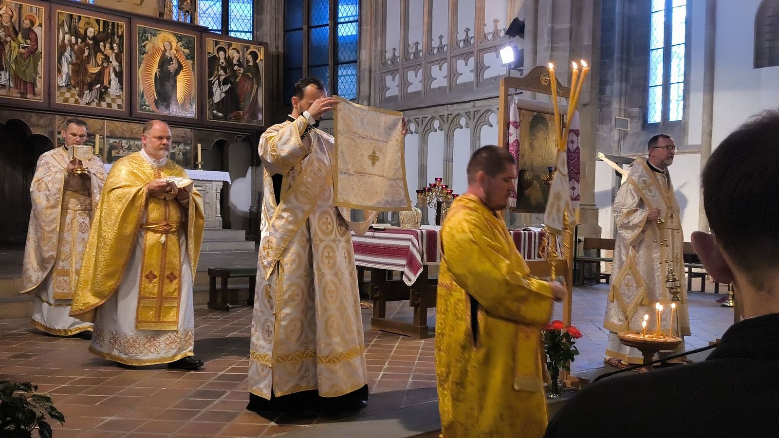Після Літургії як знак вдячності громада подарувала апстольському екзархові панагію. У свою чергу, єпископ благословив місцеву спільноту, особливо — дітей на новий навчальний рік, а також освятив плоди. А потім відбувся святковий обід, який супроводжувався співом семінаристів зі Східної колегії Айхштетту та грою на бандурі пані Віри.