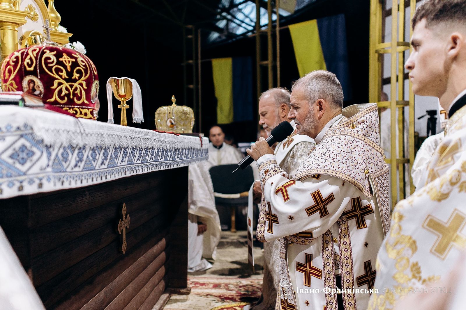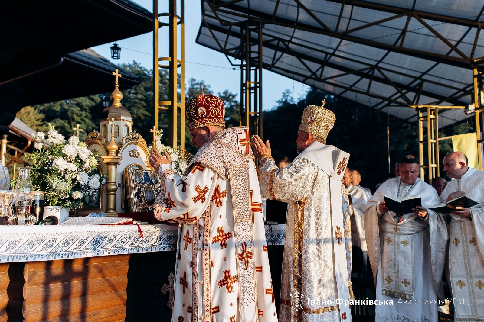 Кульмінацією першого дня прощі стала Архиєрейська Божественна Літургія. Її очолив владика Дмитро Григорак, єпарх Бучацький, у співслужінні владики Василія Тучапця, екзарха Харківського, ігумена монастиря Успіння Пресвятої Богородиці о. Терентія Цапчука, ЧСВВ, протоігумена Провінції Найсвятішого Спасителя в Україні о. Йосифа Кральки, ЧСВВ, отців проводу ІФДС, ієромонахів, душпастирів Івано-Франківської архиєпархії та інших єпархій УГКЦ.