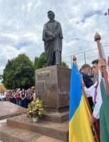 Процесія вирушила до пам’ятника Тарасові Шевченку — знакового місця для української громади міста. Там Предстоятель очолив молитву за полеглих воїнів і мирних жителів, які стали жертвами російської агресії. Біля монумента відбулося покладання квітів, після чого присутні спільно виконали Державний Гімн України.
