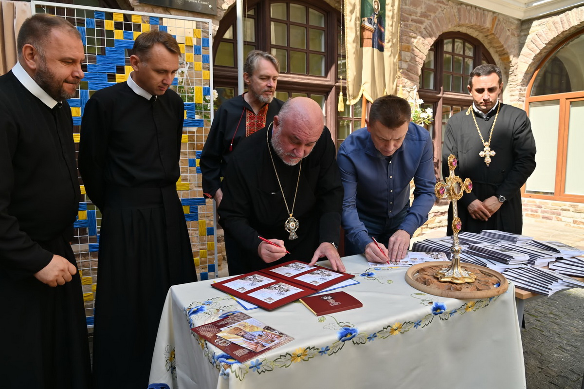З благословення архиєпископа і митрополита Тернопільсько-Зборівського Теодора Мартинюка, у події взяли участь: о. митрат Андрій (Іван) Говера — ініціатор серії марок; перший заступник голови Тернопільської обласної ради Володимир Болєщук — фундатор перевидання праці й втілення поштового проєкту; Олег і Наталія Кіналі — художники-оформлювачі; о. Василь Макоїд — представник духовенства архиєпархії; Василь Дідух — філателіст; о. Роман Якимець — настоятель Бучацького монастиря; о. Пантелеймон Саламаха — директор Бучацького ліцею ім. св. Йосафата; вихованці та викладачі ліцею; гості, журналісти, парафіяни.