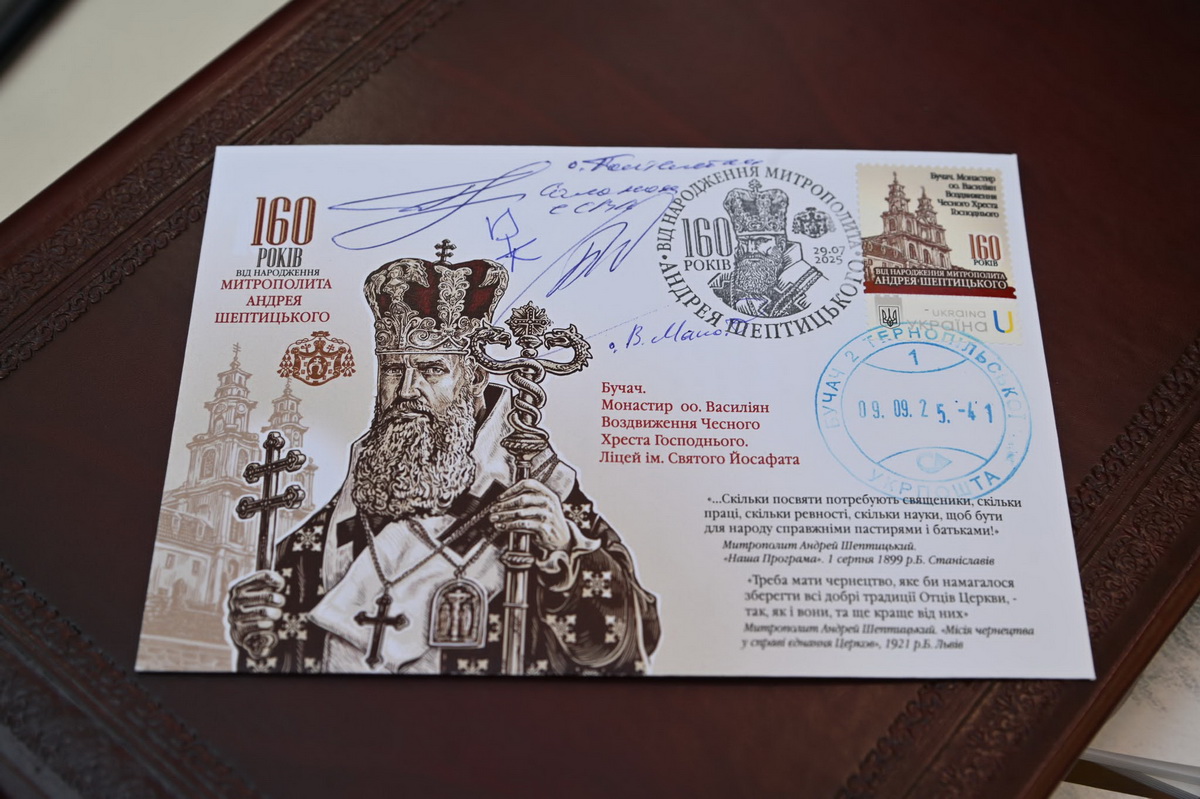У Бучацькому монастирі отців василіян Воздвиження чесного Хреста Господнього відбулася знакова подія: спецпогашення шостої ювілейної марки, присвяченої 160-річчю від дня народження митрополита Андрея Шептицького, а також презентація перевидання його відомої праці «Як будувати Рідну Хату».