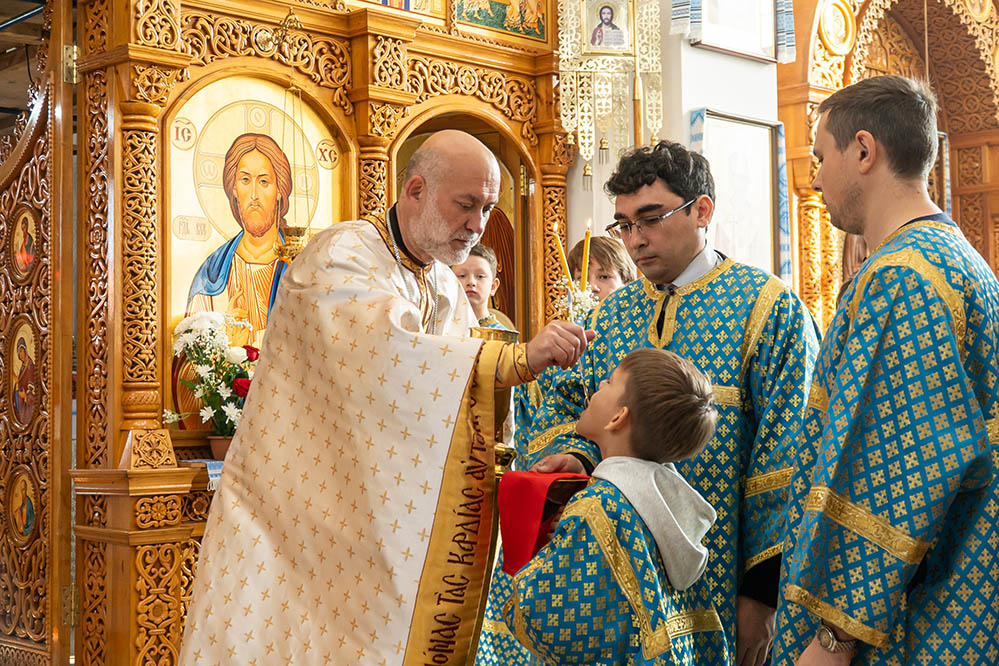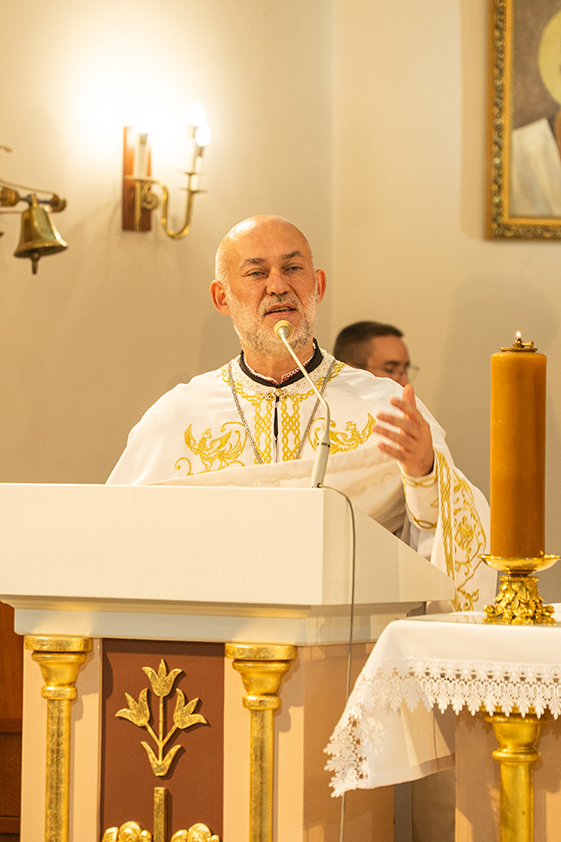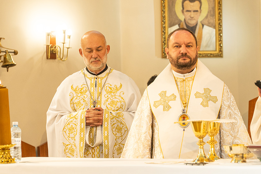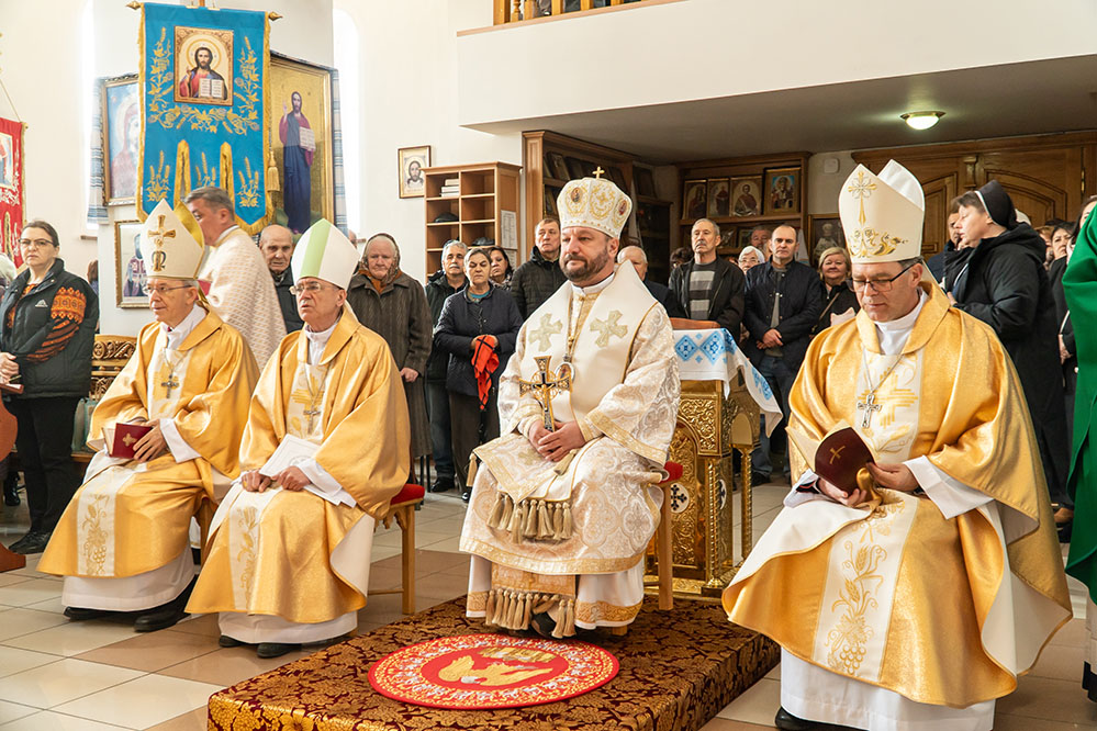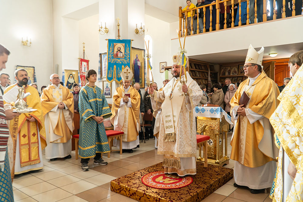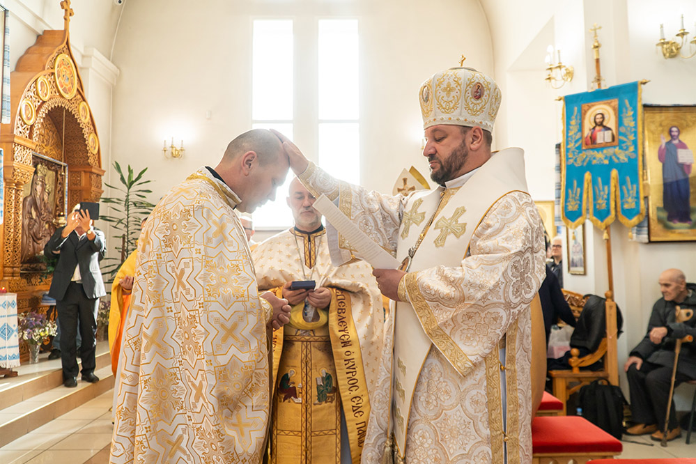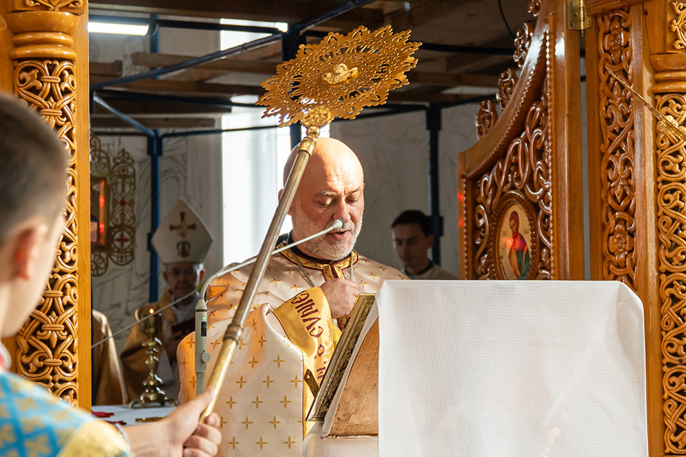 Під час богослужіння владика Теодор нагородив священника Ігоря Свитового золотим хрестом і передав парафії дорогоцінну реліквію — частинку мощей блаженного єпископа Петра Ороса, беатифікованого у вересні 2025 року.