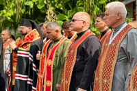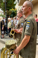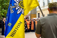 На завершення відправи присутні поклали квіти до меморіалу полеглих Героїв та спільно виконали Державний гімн України під акомпанемент військового оркестру 10 окремої гірсько-штурмової бригади.