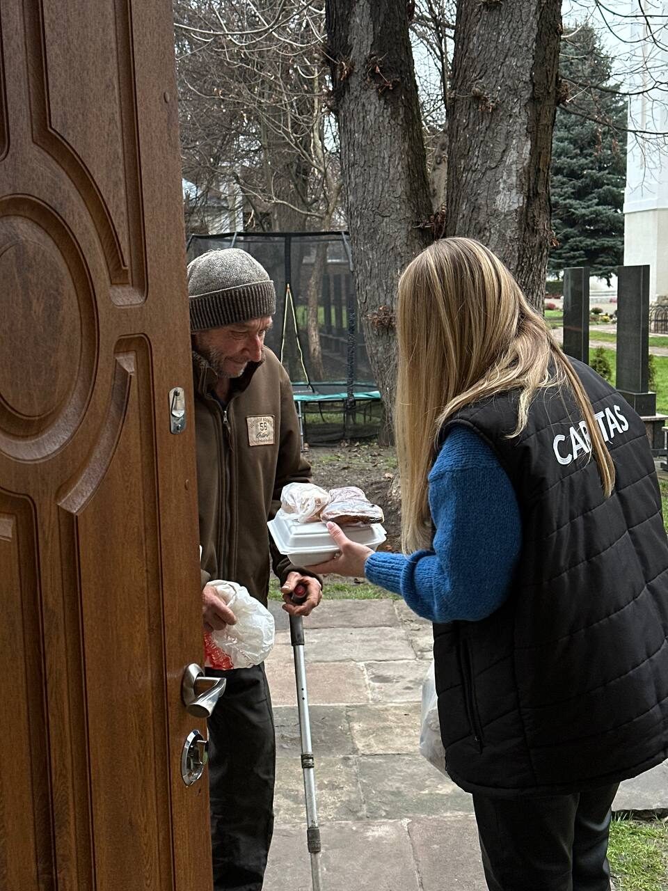 «У наших їдальнях видають понад тисячу обідів щотижня. Розпорядок роботи різний — деякі працюють щодня, інші раз чи двічі на тиждень. Здебільшого це волонтерські ініціативи, які підтримують місцеві парафії та громади. Саме завдяки щедрості цих людей готуються обіди. Це справжнє ділення добром», — розповідає отець Сергій Триф’як, директор Єпархіального благодійного фонду «Карітас Коломия».