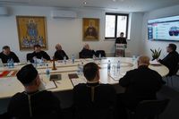Отець Любомир Яворський, Патріарший економ, представив єпископам, як наша Церква своїм служінням на території Києво-Галицької митрополії відповідає на гуманітарні виклики.