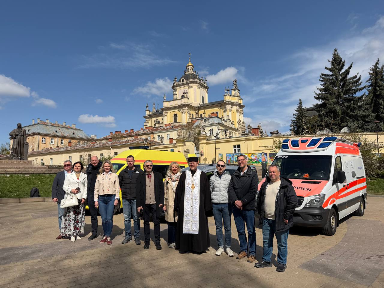 У Львові освятили чергові автомобілі швидкої допомоги, передані греко-католицькою парафією з Ганновера