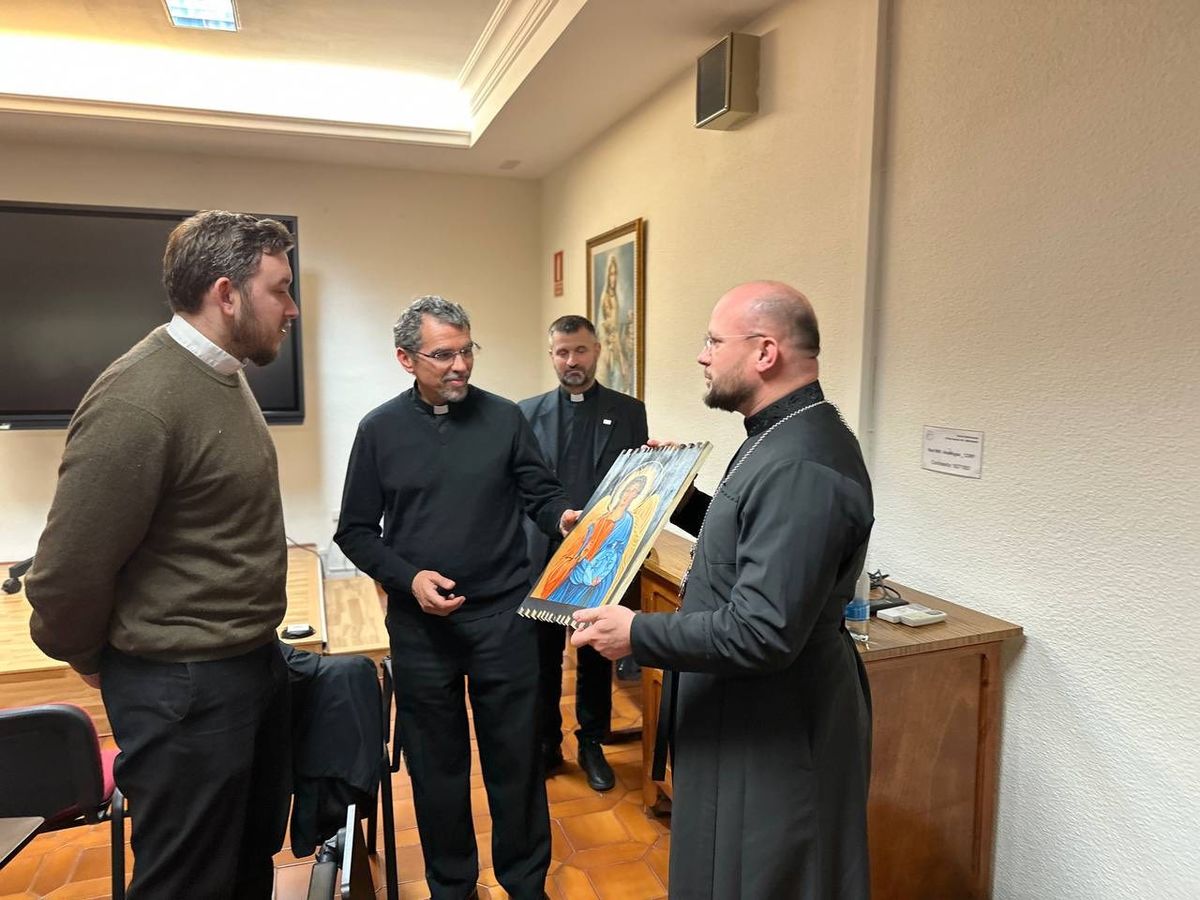 Вікарій Ординаріату для католиків східного обряду в Іспанії о. Андреас Мартінес Естебан подякував українським душпастирям за їхню працю серед вірних та запевнив у своїй молитві за їхнє служіння. На знак вдячності за підтримку українських священників владика Степан Сус передав йому символічний дарунок — ікону архистратига Михаїла, написану на ящику від боєприпасів.
